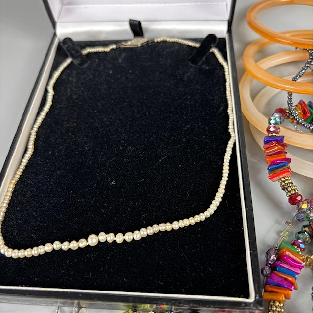 Collection of costume jewellery to include bangles, earrings, bracelets, pearls etc.