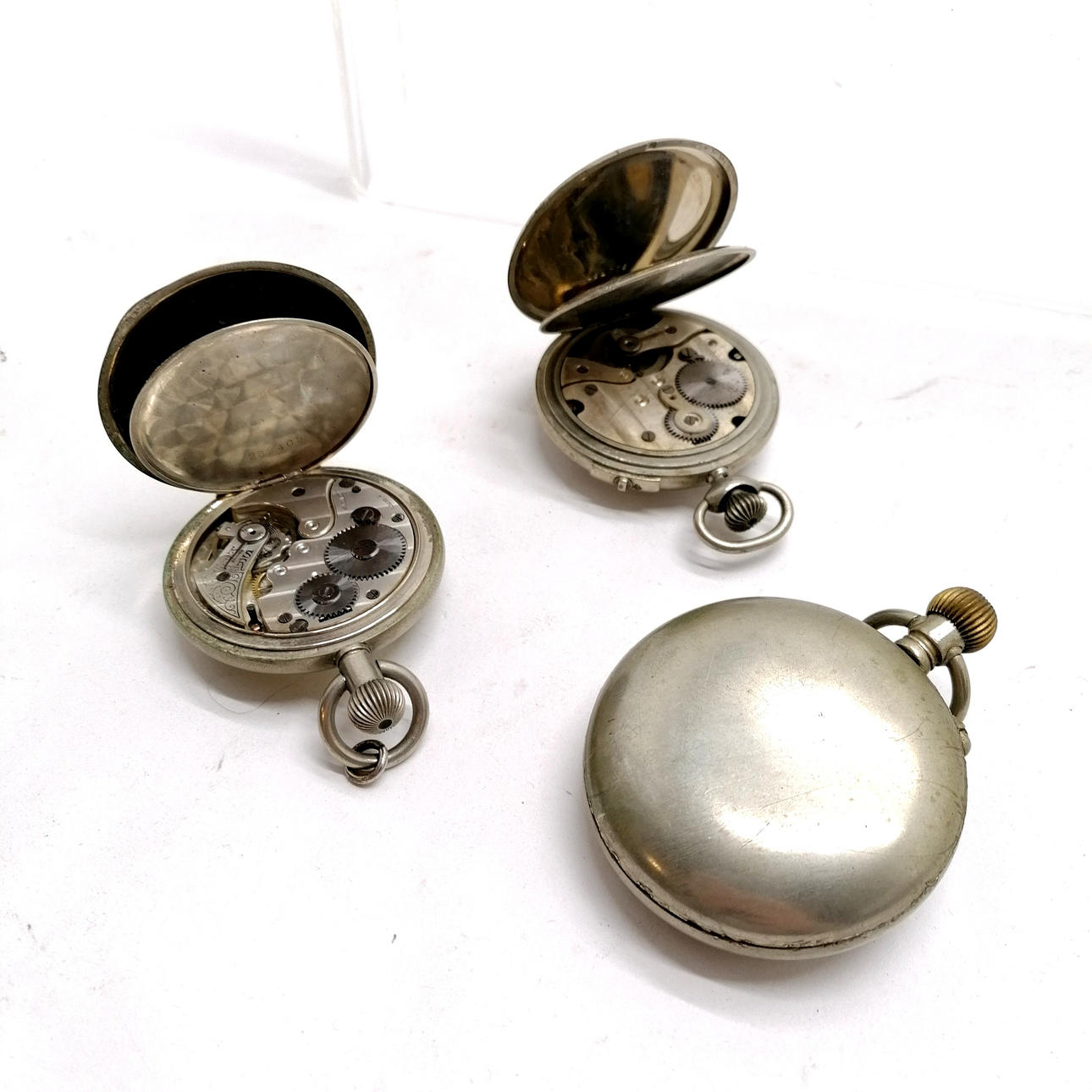 2 x c.WWII stopwatches (white dial is running) t/w Sefton nickel cased pocket watch (57mm & a/f).