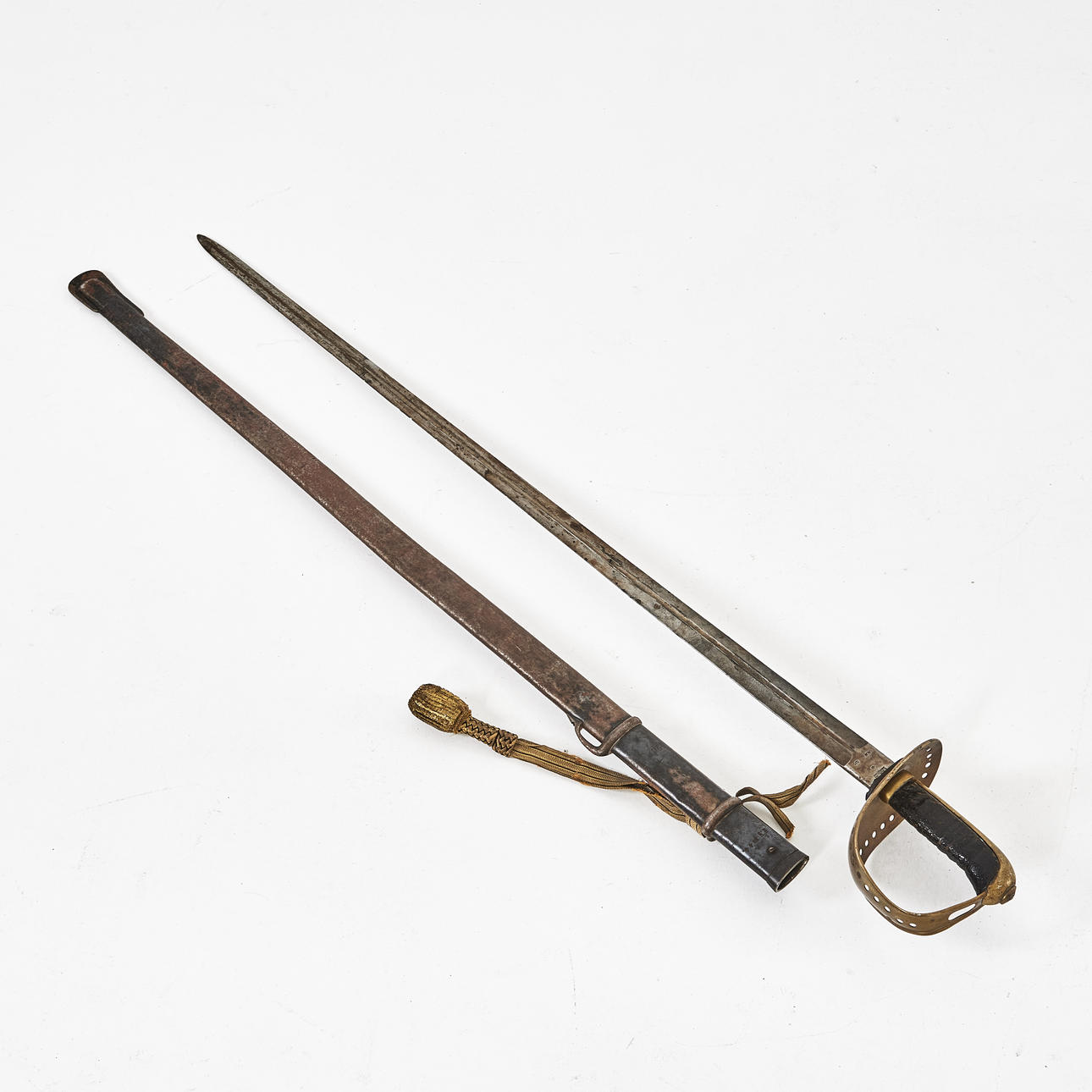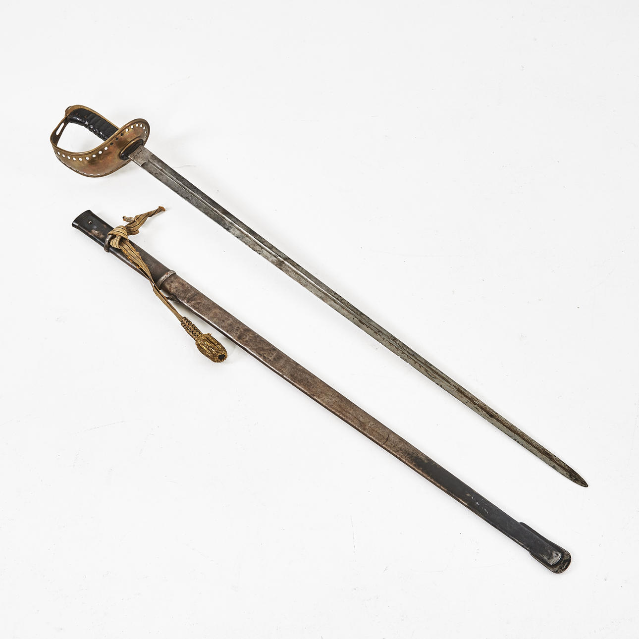 Steel tub, brass bracket, vestige of portepe included. Blade length 95, total length 110 cm.