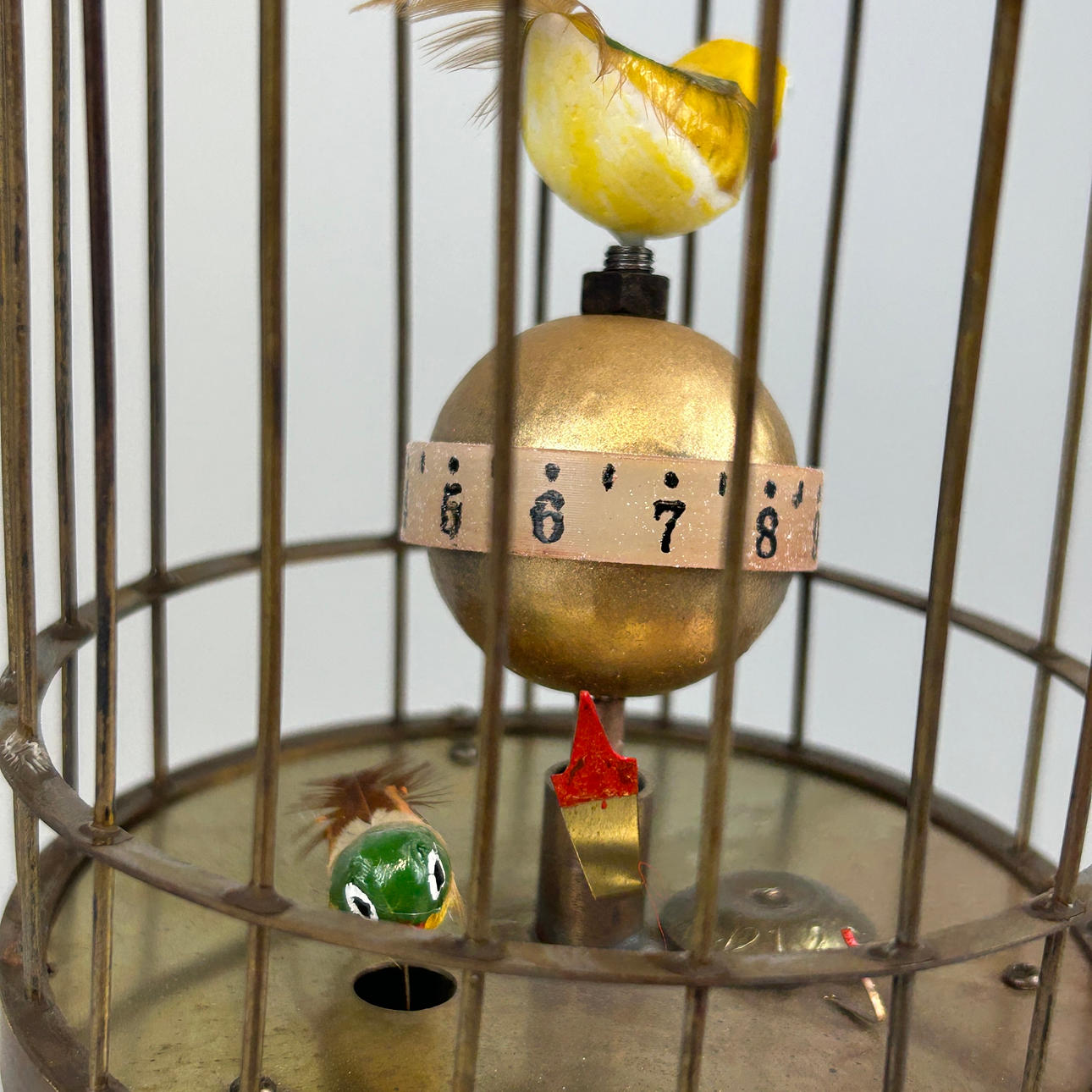 NOVELTY BRASS BIRD CAGE CLOCK.