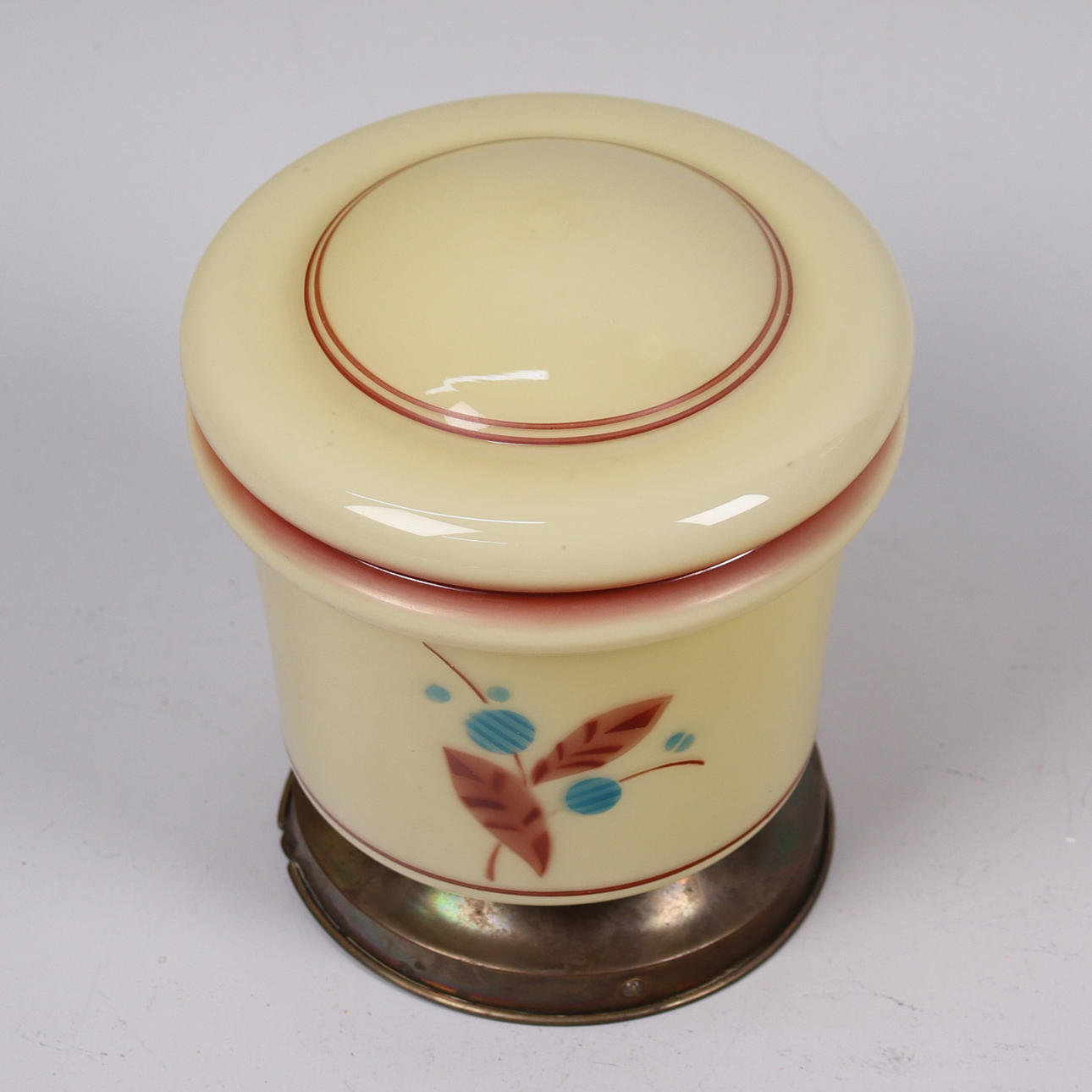 Painted glass cup with brass ceiling bracket. Height including bracket 17 cm.