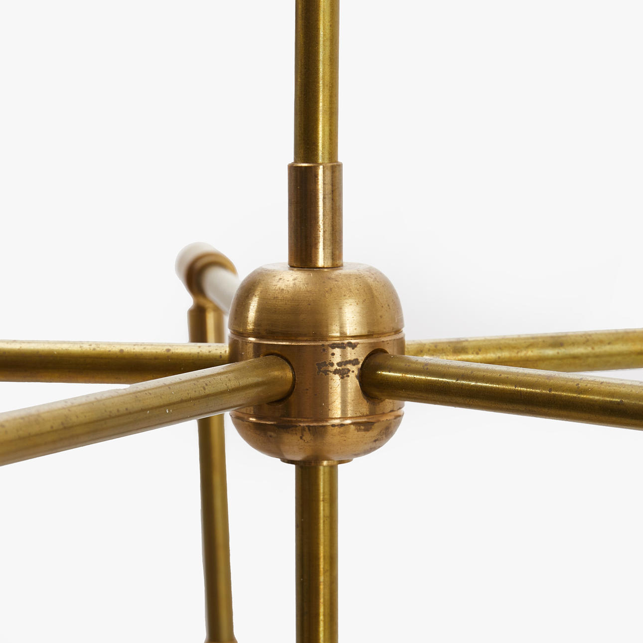 Normal wear and tear. One lamp base brass cover with stretch marks.