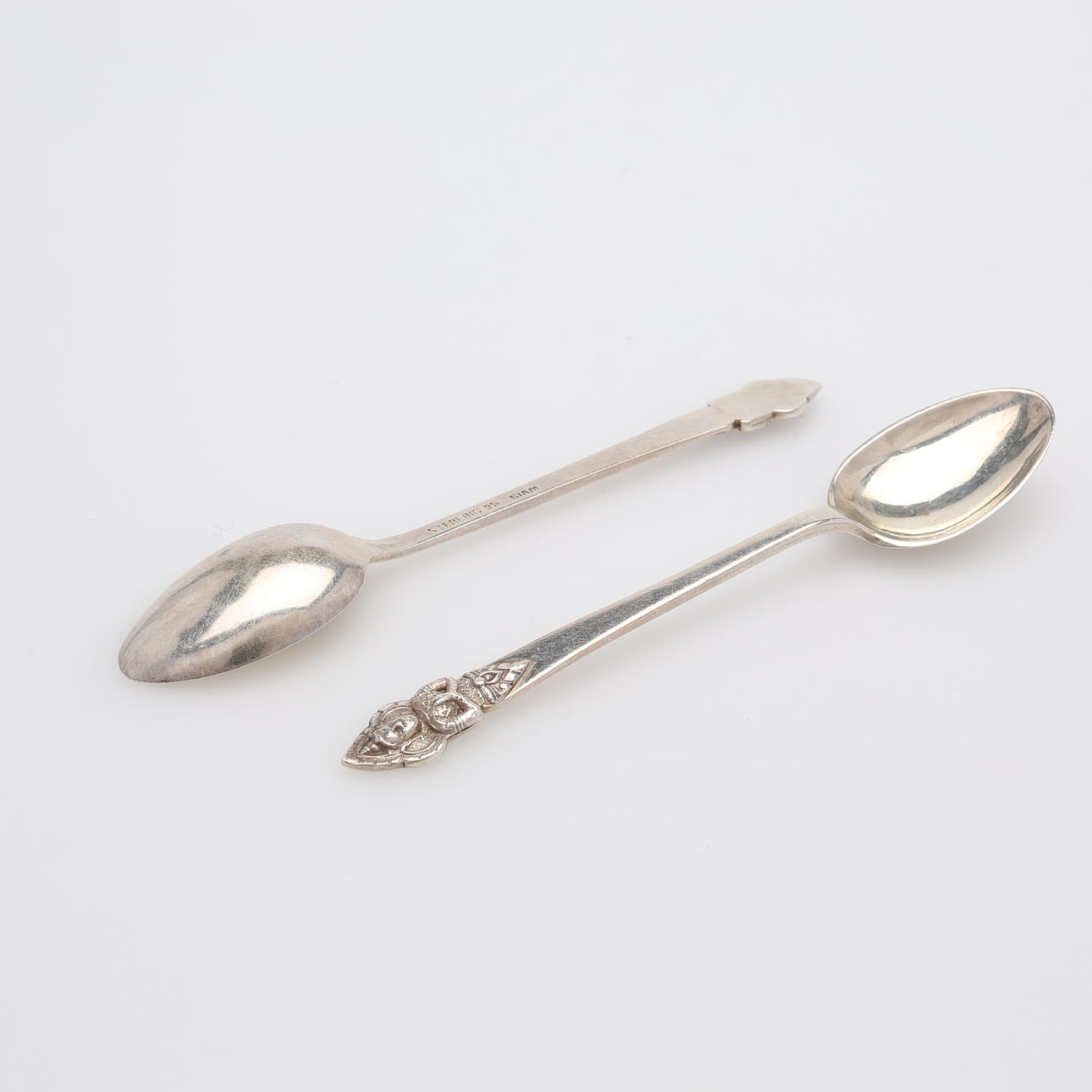 Including 12 demitasse spoons, 1 sugar tong and 2 buckles from Thailand. etc.