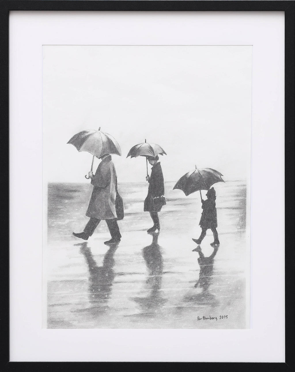 PER BLOMBERG. drawing, walk with umbrellas, signed, dated 2025.