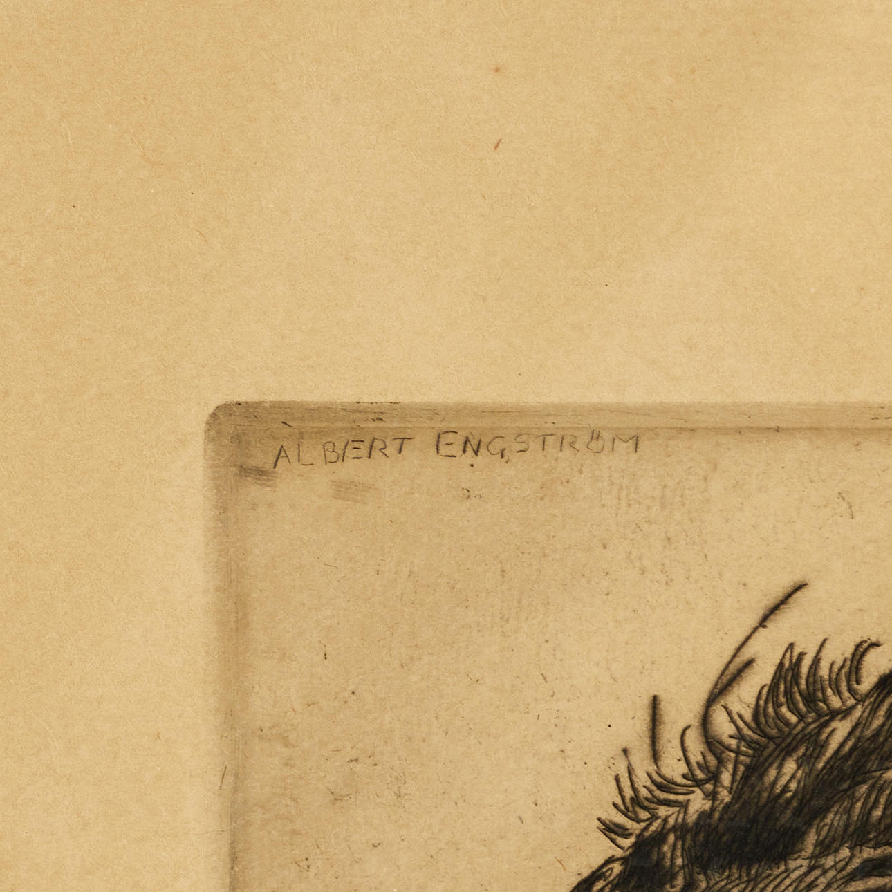 ALBERT ENGSTRÖM (1869–1940). Lion, signed, etching.