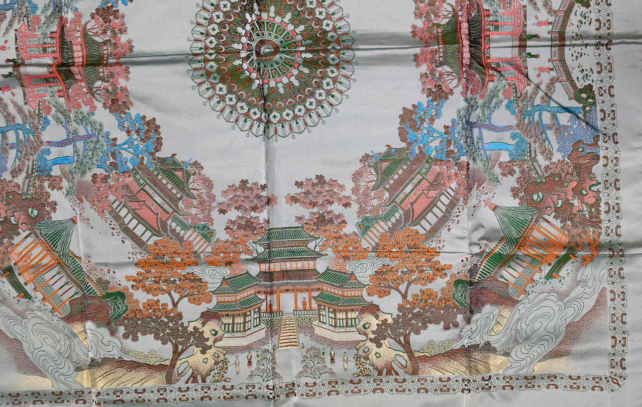 4983057. BROCADE CARPET IN ORIENTAL SILK. PALATIAL SCENE.