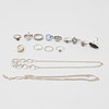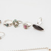 Two necklaces, 2 pendants and 11 rings. Solika stones and paste. Total weight about 70 grams.