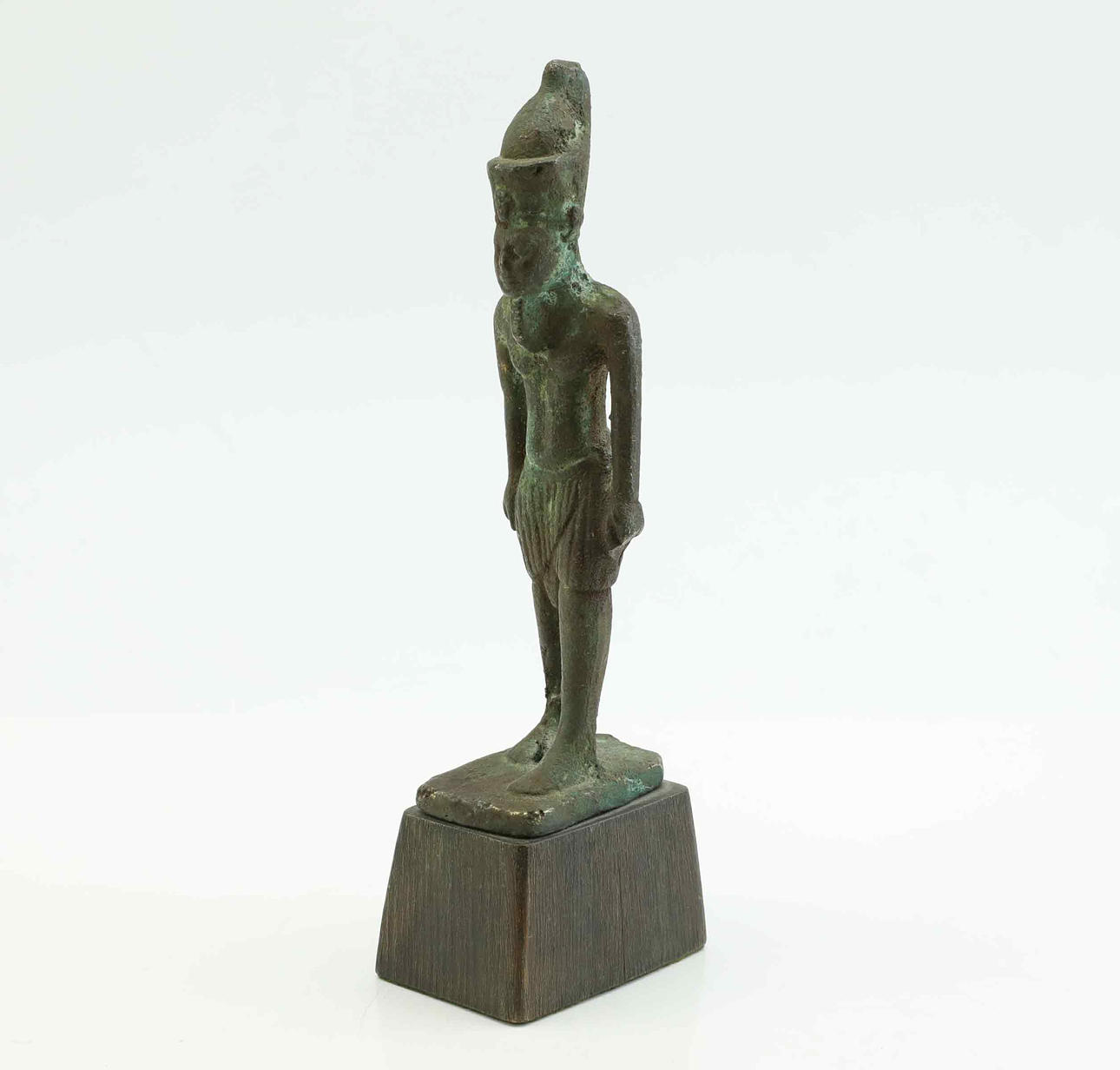Mounted on wooden plinth. The sculpture was purchased in Egypt during the 1960s.