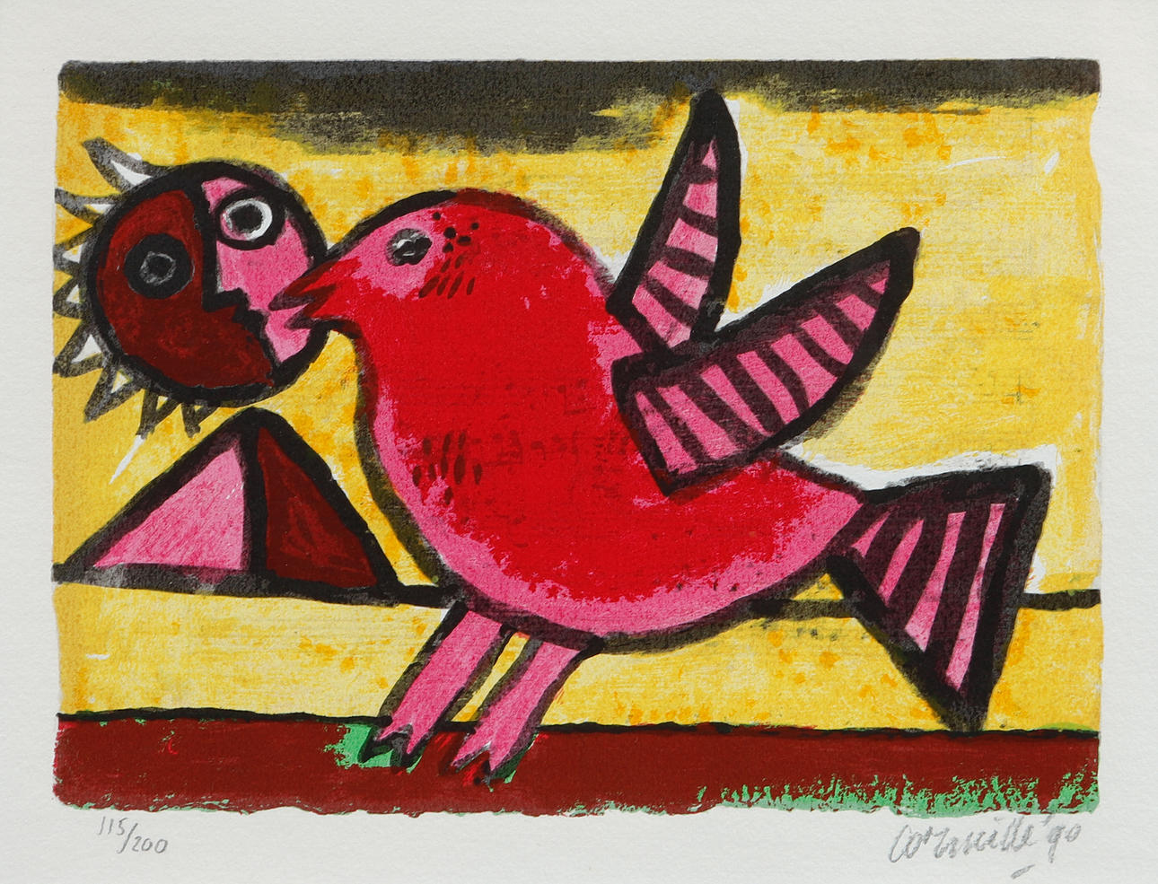 BEVERLOO CORNEILLE. Composition with bird, sun and pyramid, lithograph in colours, signed, numbered 115/200 and dated -90.