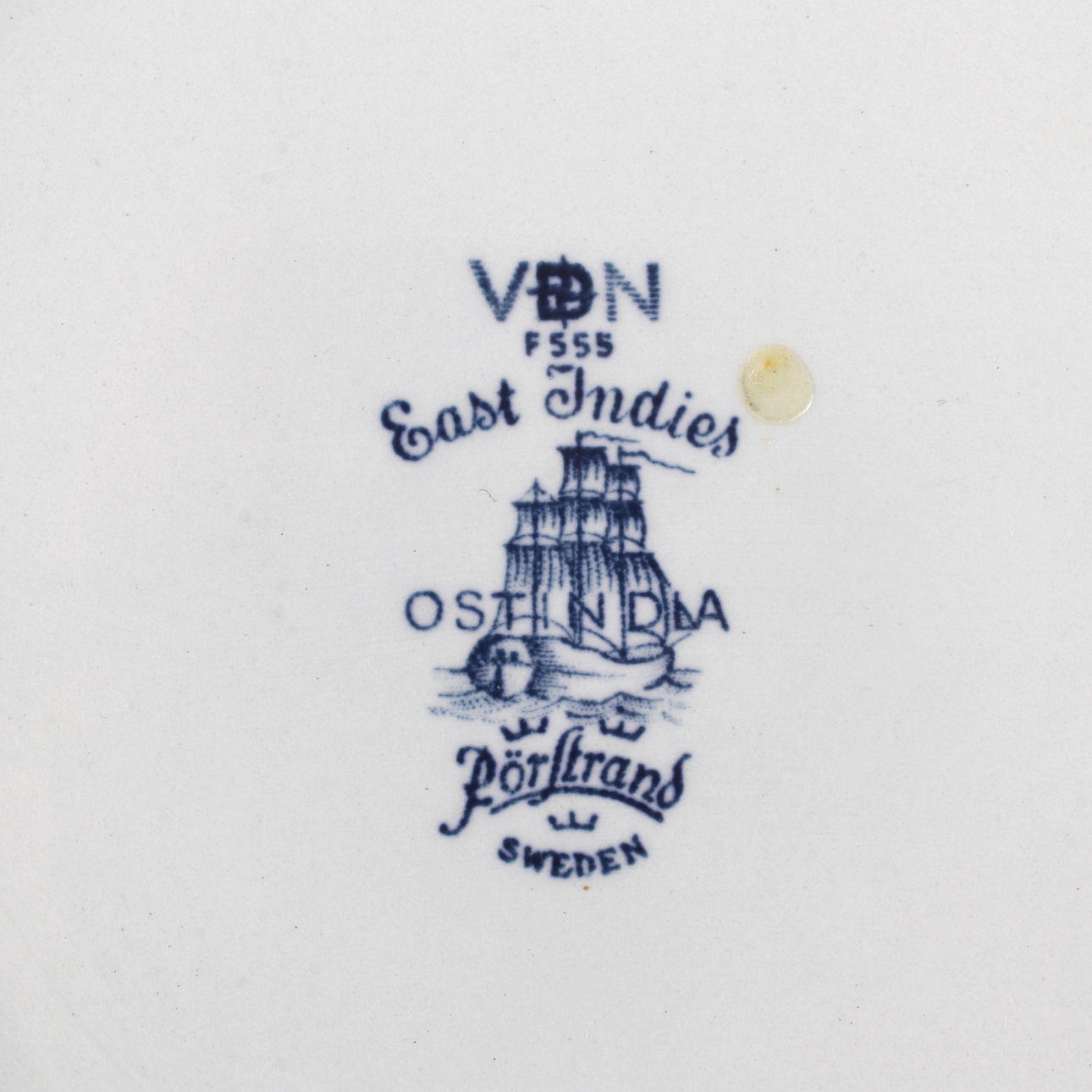 Dinnerware in porcelain, “Ostindia” by Rörstrand. 88 pieces: plates, deep plates, side dishes, coffee cups, teacups, saucers, egg cups, jug, butter terrine, sugar bowl, cream jug, serving dish, mug, tray in painted wood.