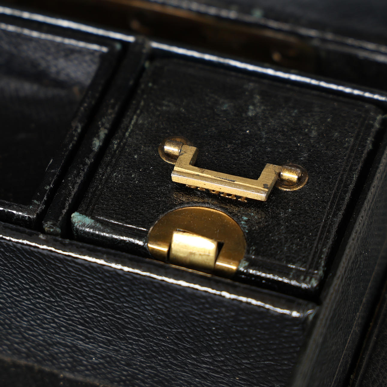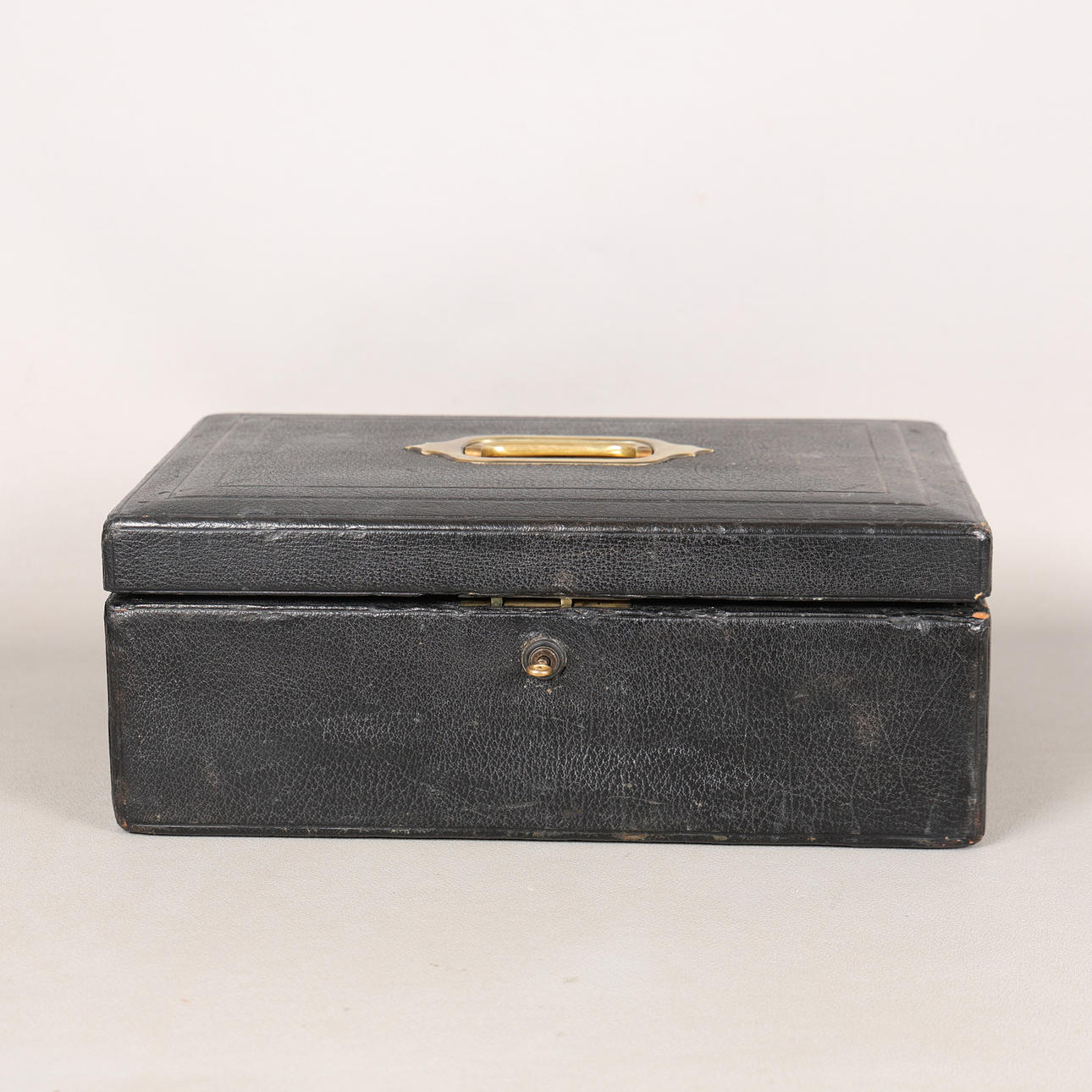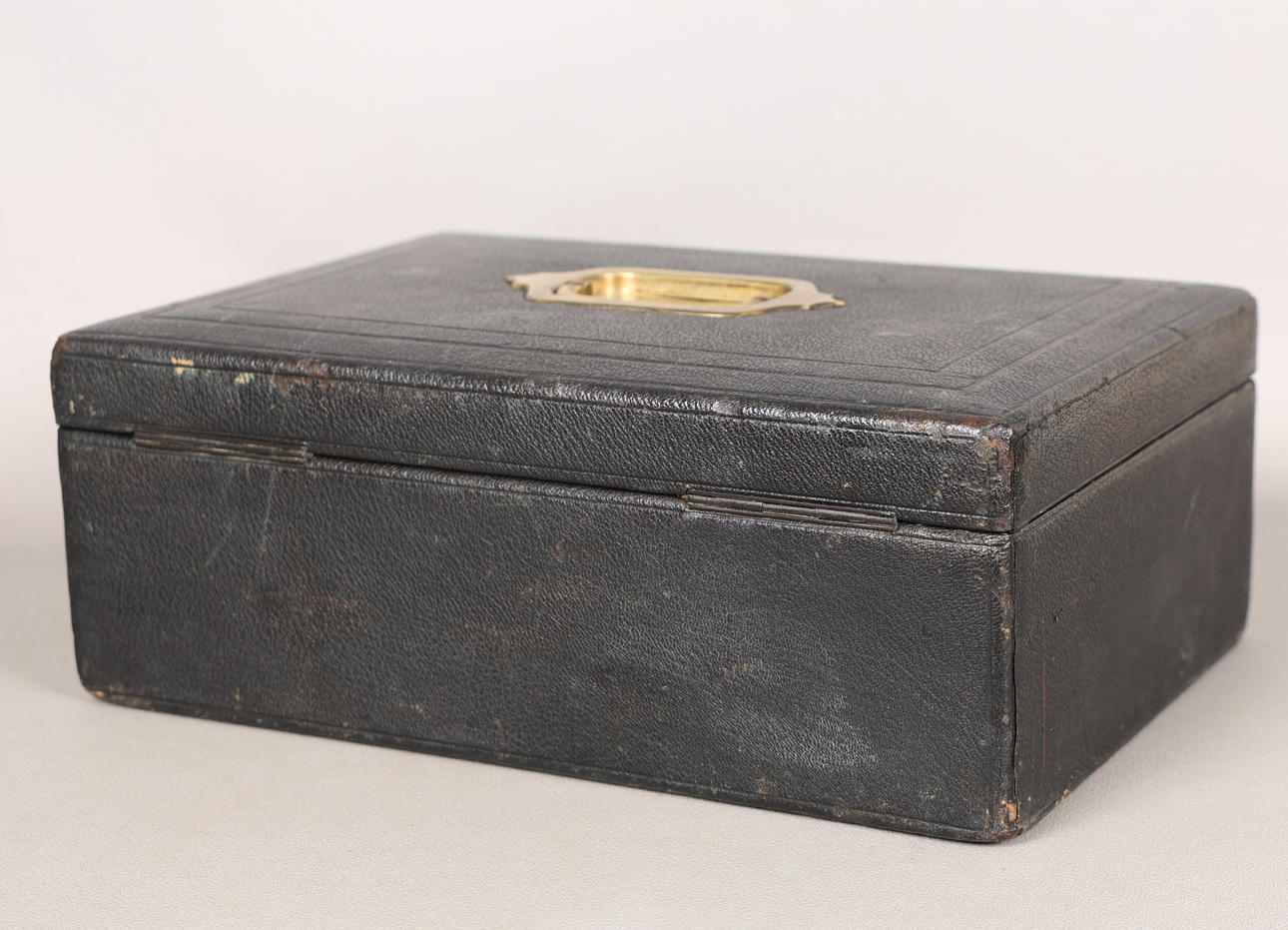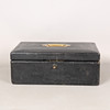 Having a brass cartouche to the top engraved "F.G. Reid, Esq., M.D.," 46 Hartford Street, Mayfair, London, fitted with a Bramah style lock, 38cm wide 26cm deep 15cm high.