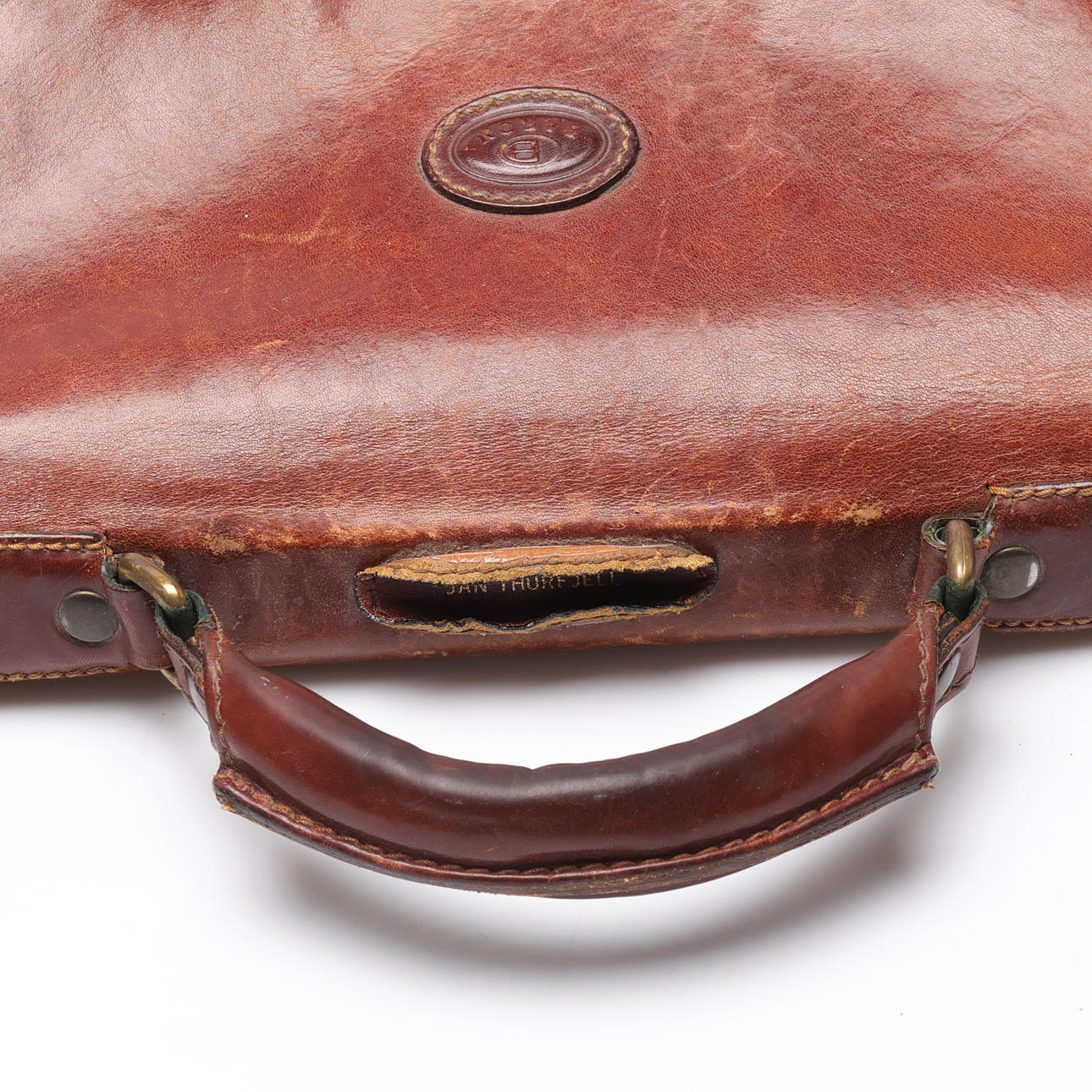 Wear, partial hard wear and minor damage, upper part with name.