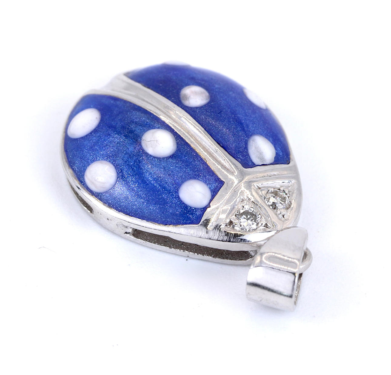 An 18ct white gold blue enamelled ladybug pendant set with diamonds.