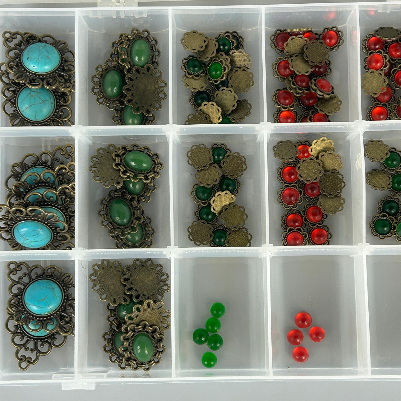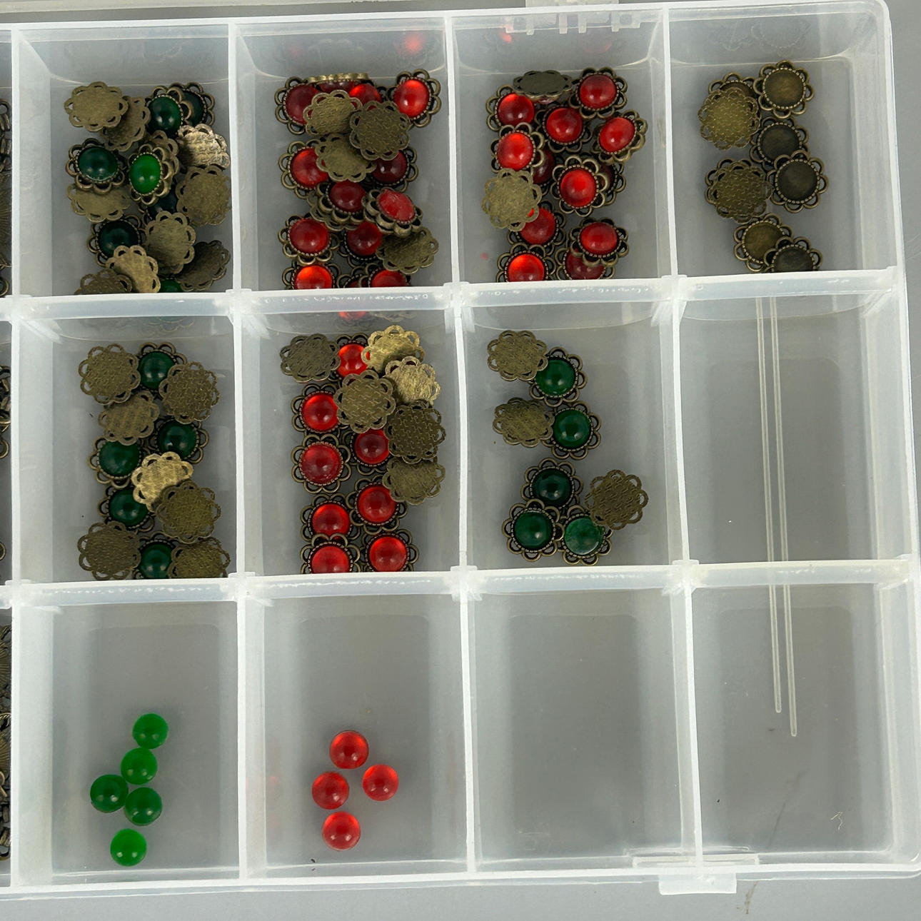A box containing a quantity of decorative beads, box size 27 x 18 x 4cm.