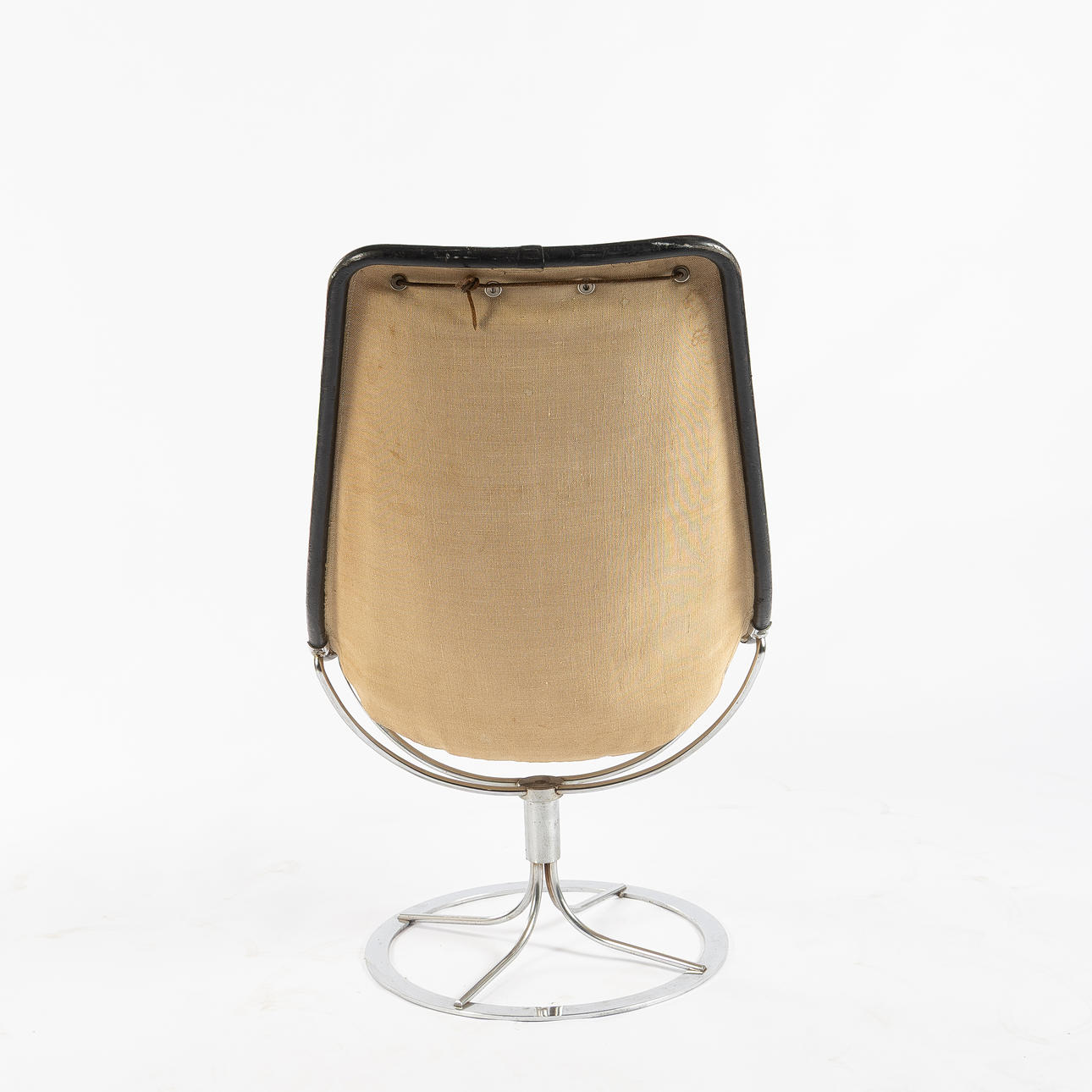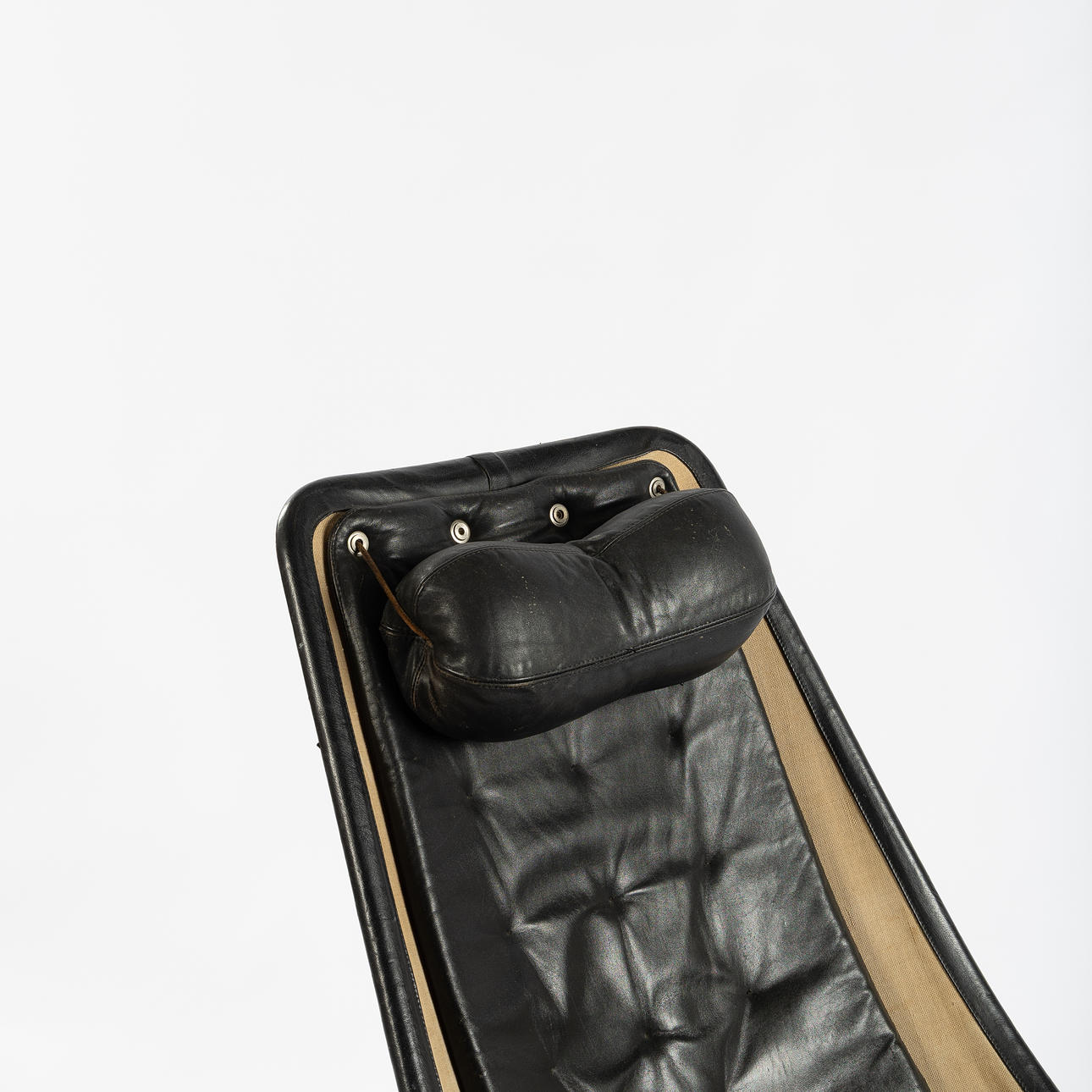 Black leather upholstery with neck pillow, chromed leg stand, height approx. 94, seat height approx. 35 cm.