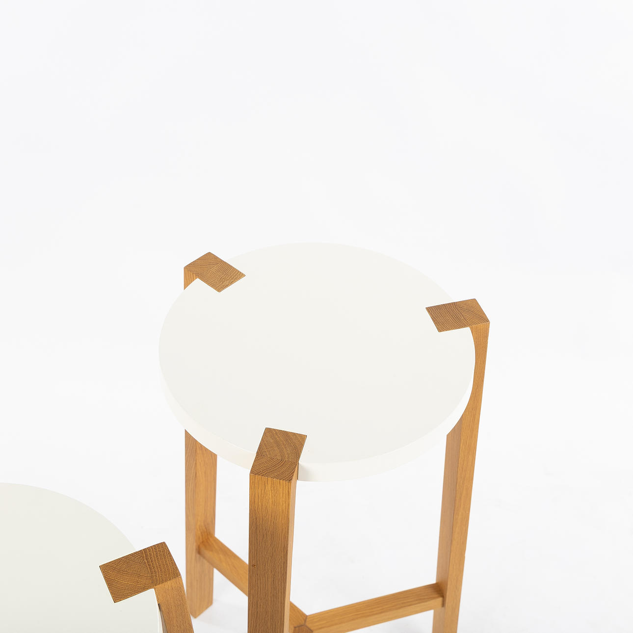 Legs in solid oiled oak, seat in white painted mdf, tile marked A2, paws are available.