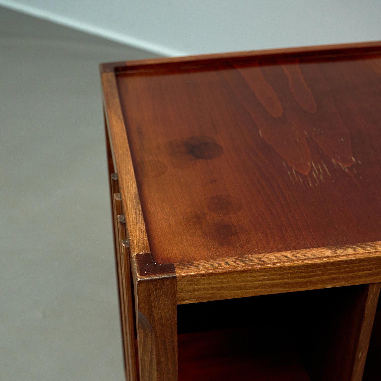 Signs of wear and tear due to age. Partially discolored surface.