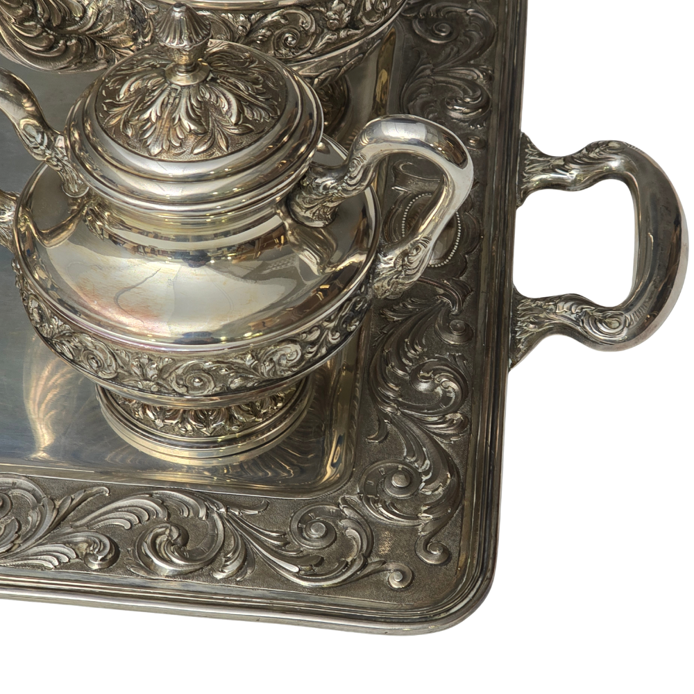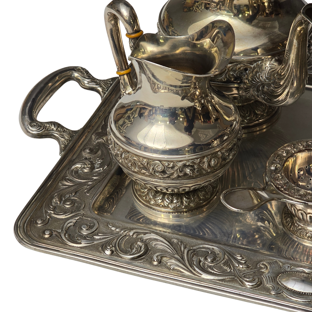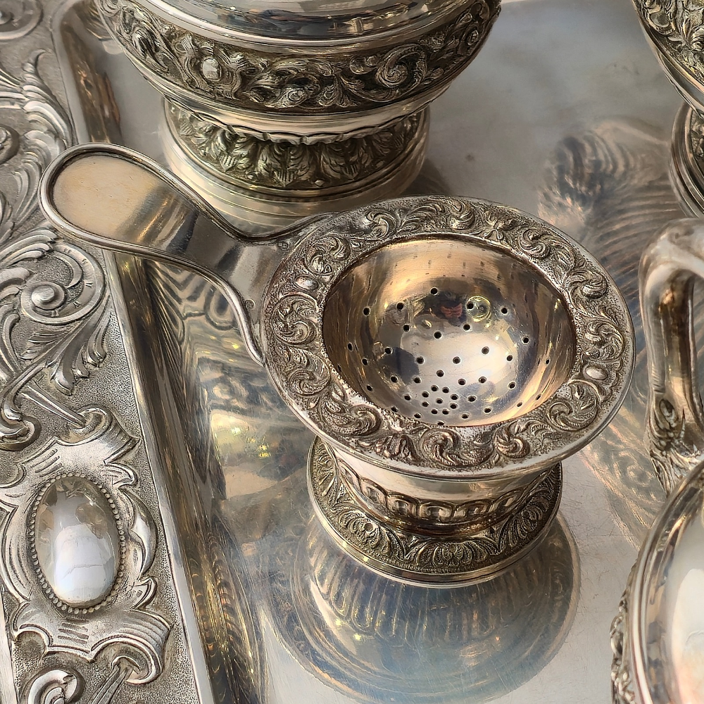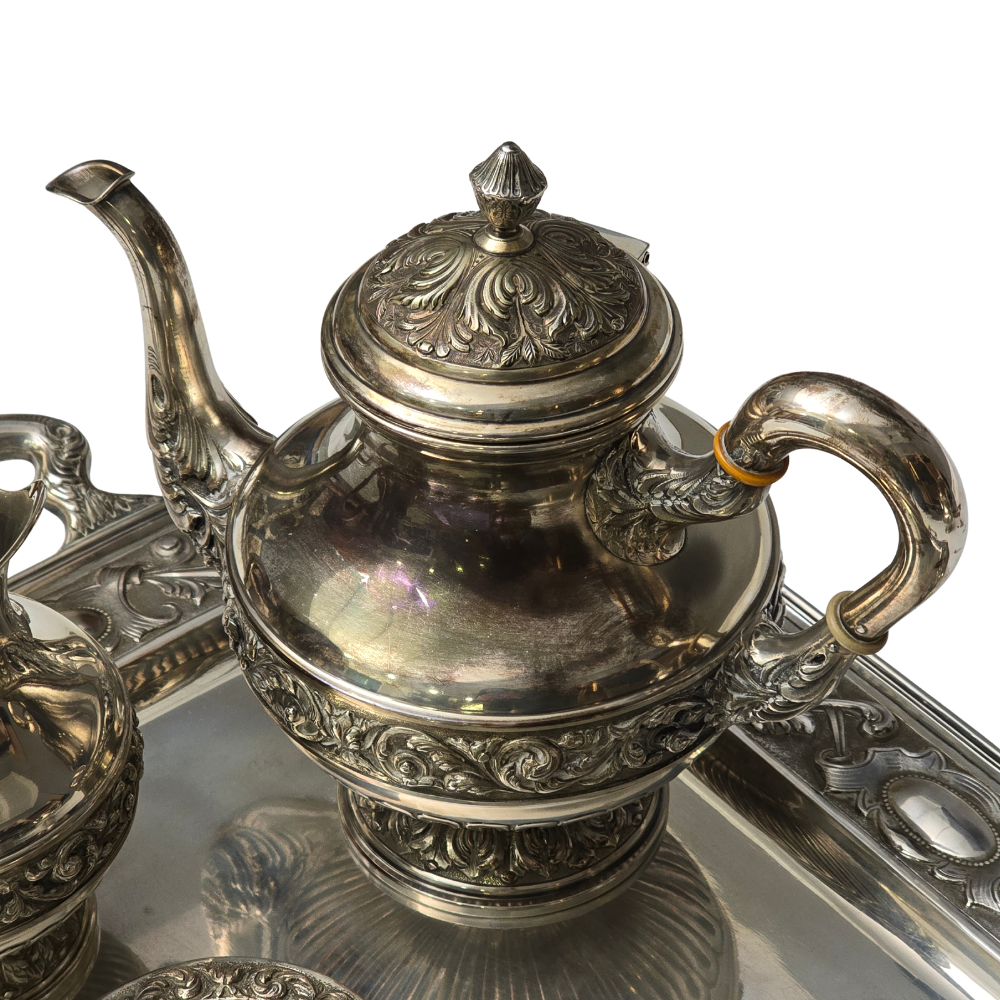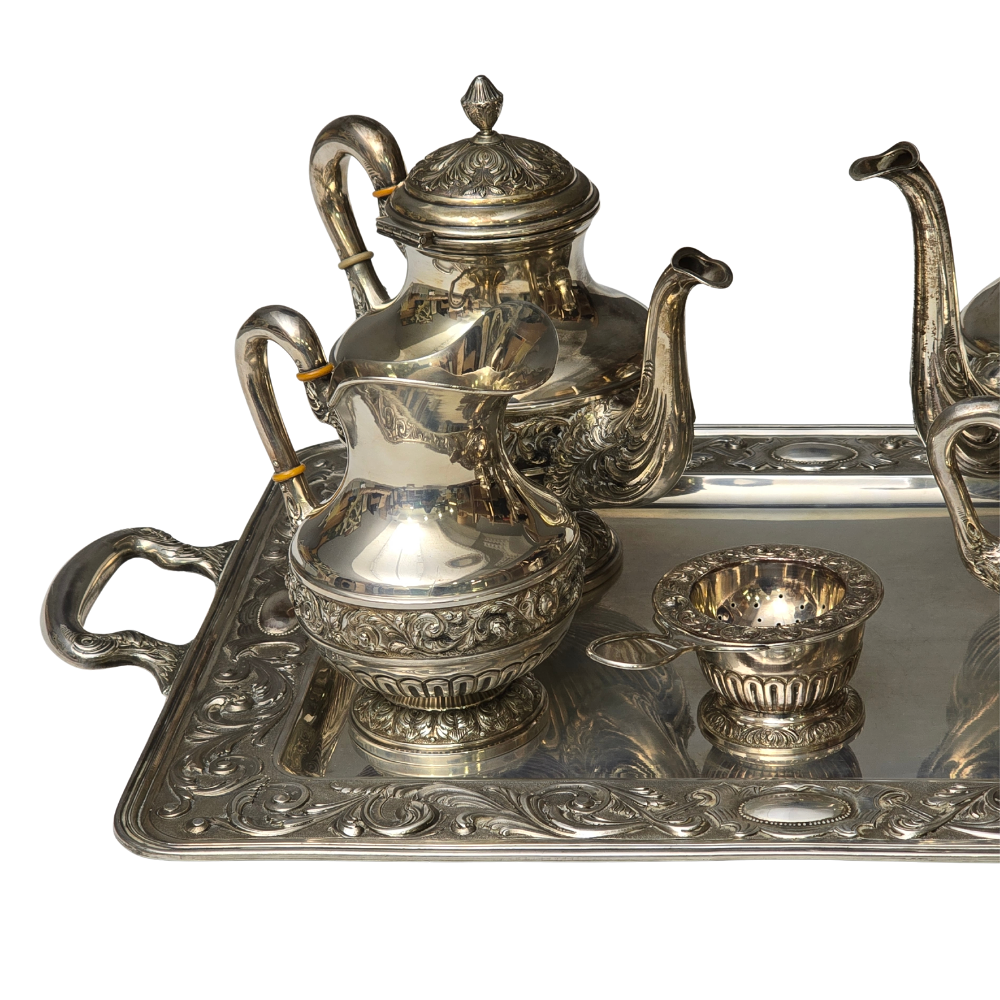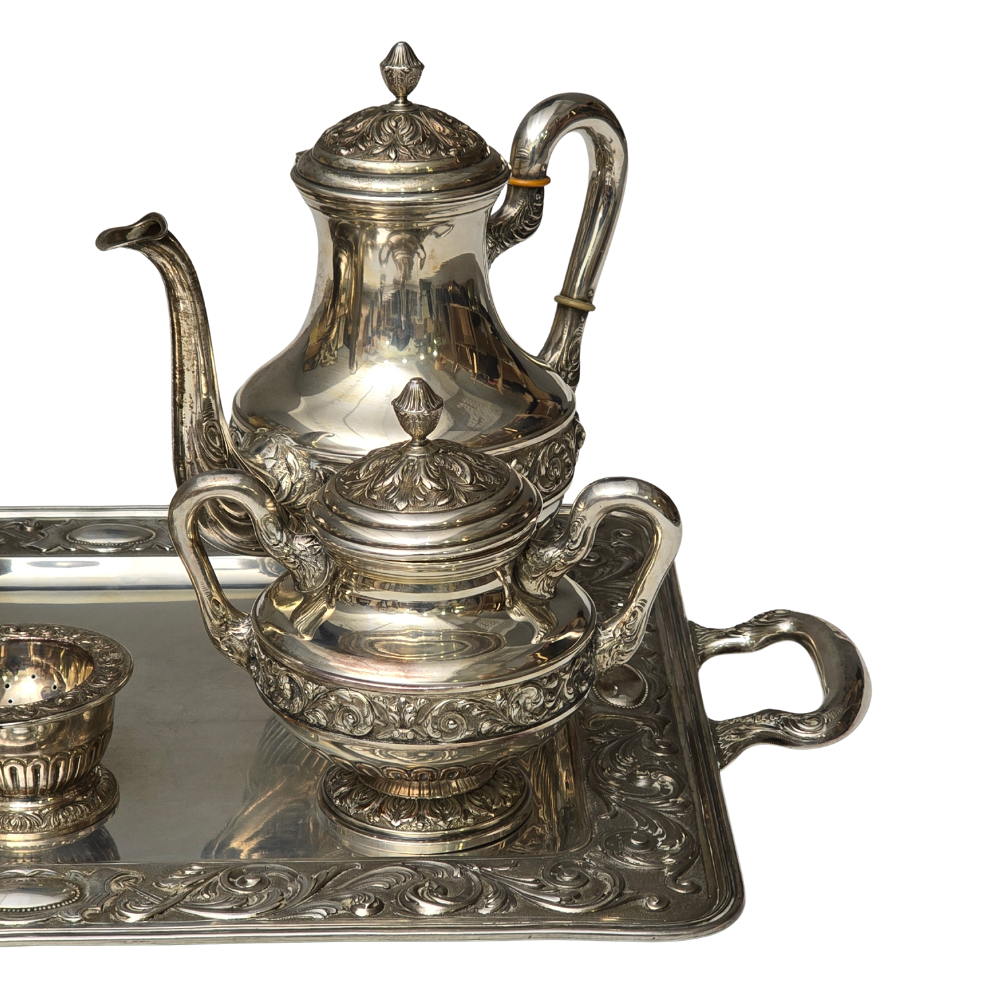 4983683. COFFEE AND TEA SET IN SPANISH PUNCHED SILVER.