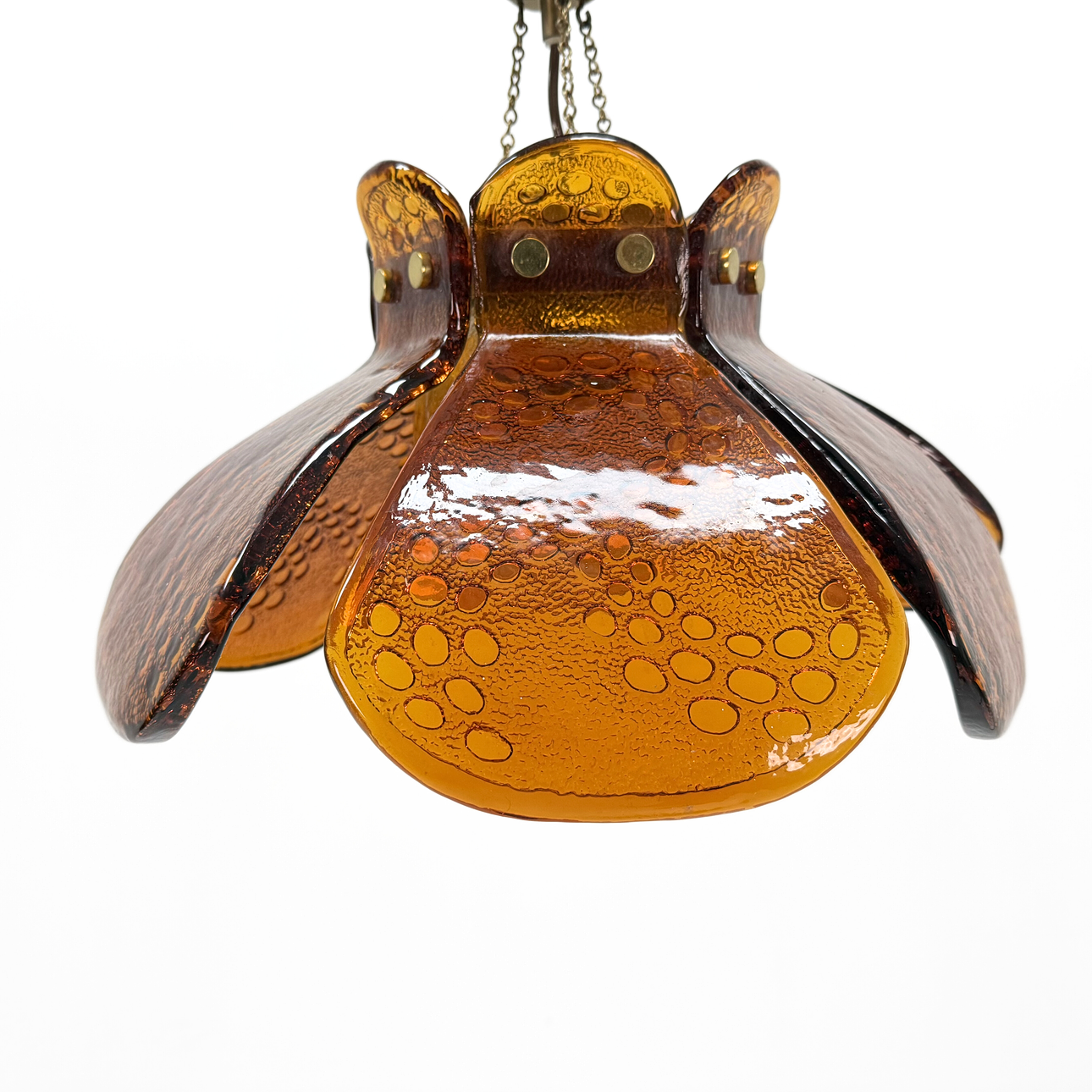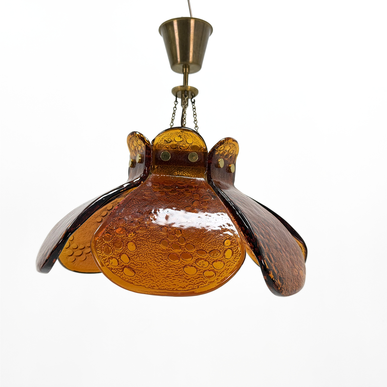 CEILING LAMP - Solid glass and brass, 1970s.