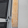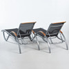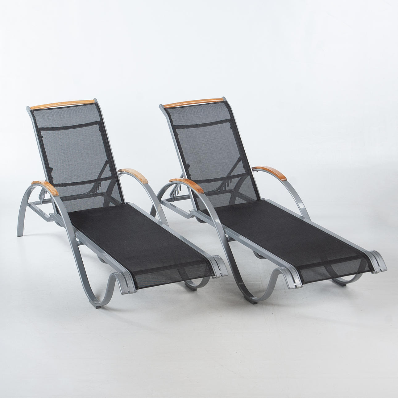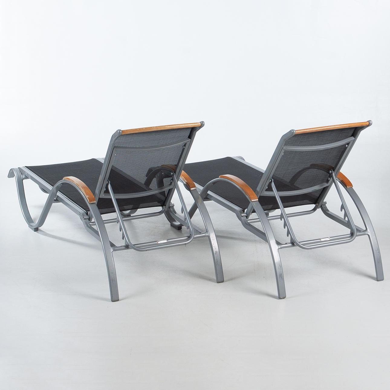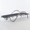 Frame in lacquered metal with textile seat and wooden armrests. Length approx. 195 cm, width approx. 53 cm.