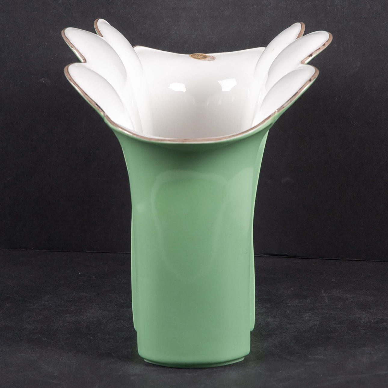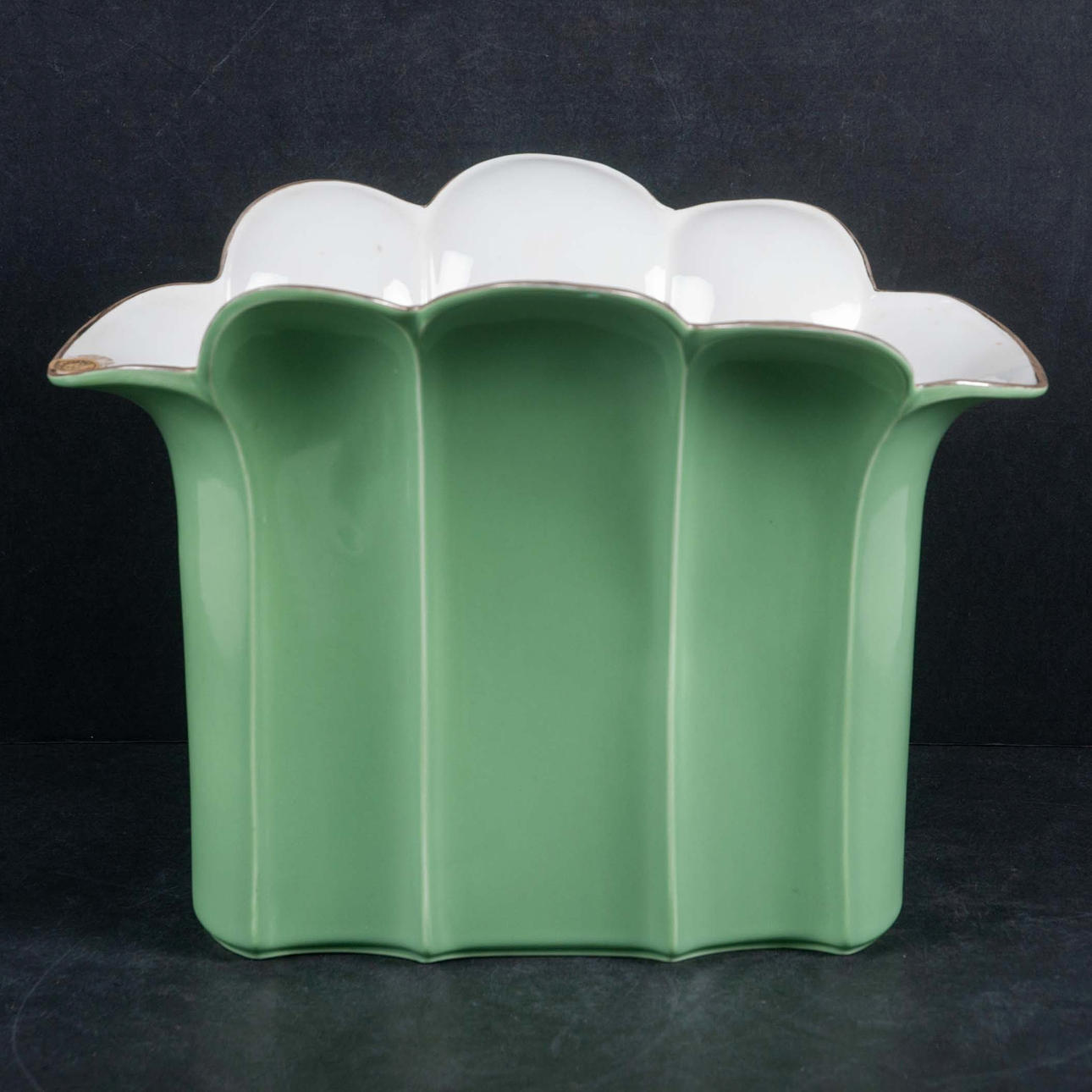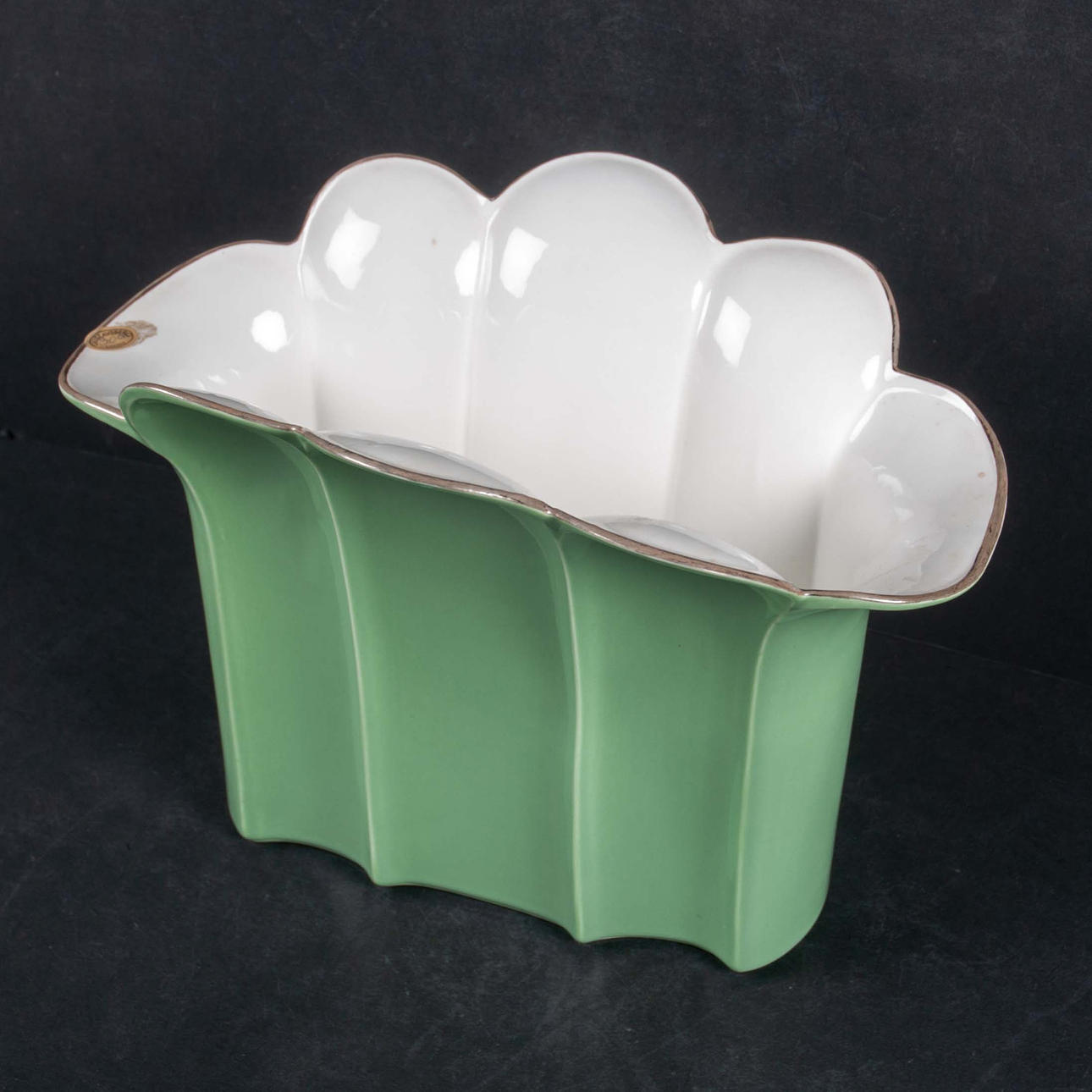 Pleated model with green glaze and white inside.