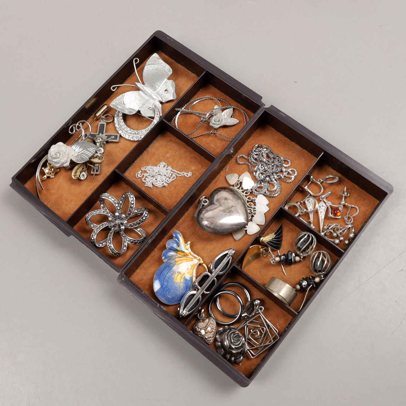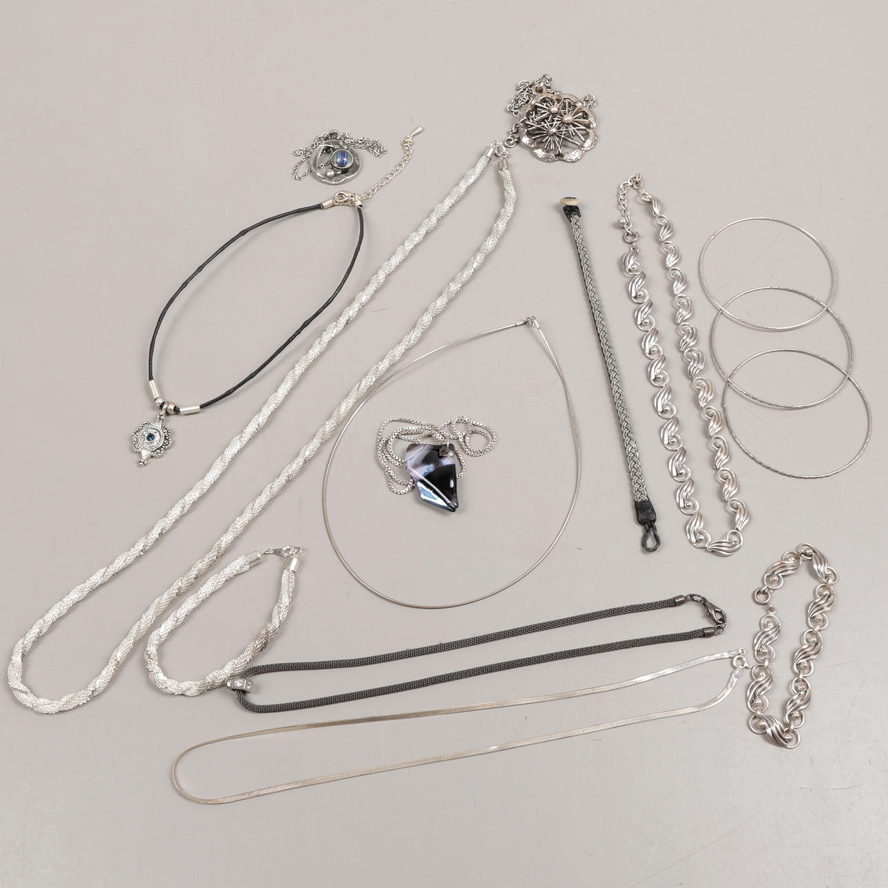 Earrings, necklaces, rings, bracelets, brooches etc.