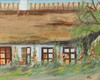 OIDENTIFIERAD KONSTNÄR. House facade, mixed media, monogram signed.
