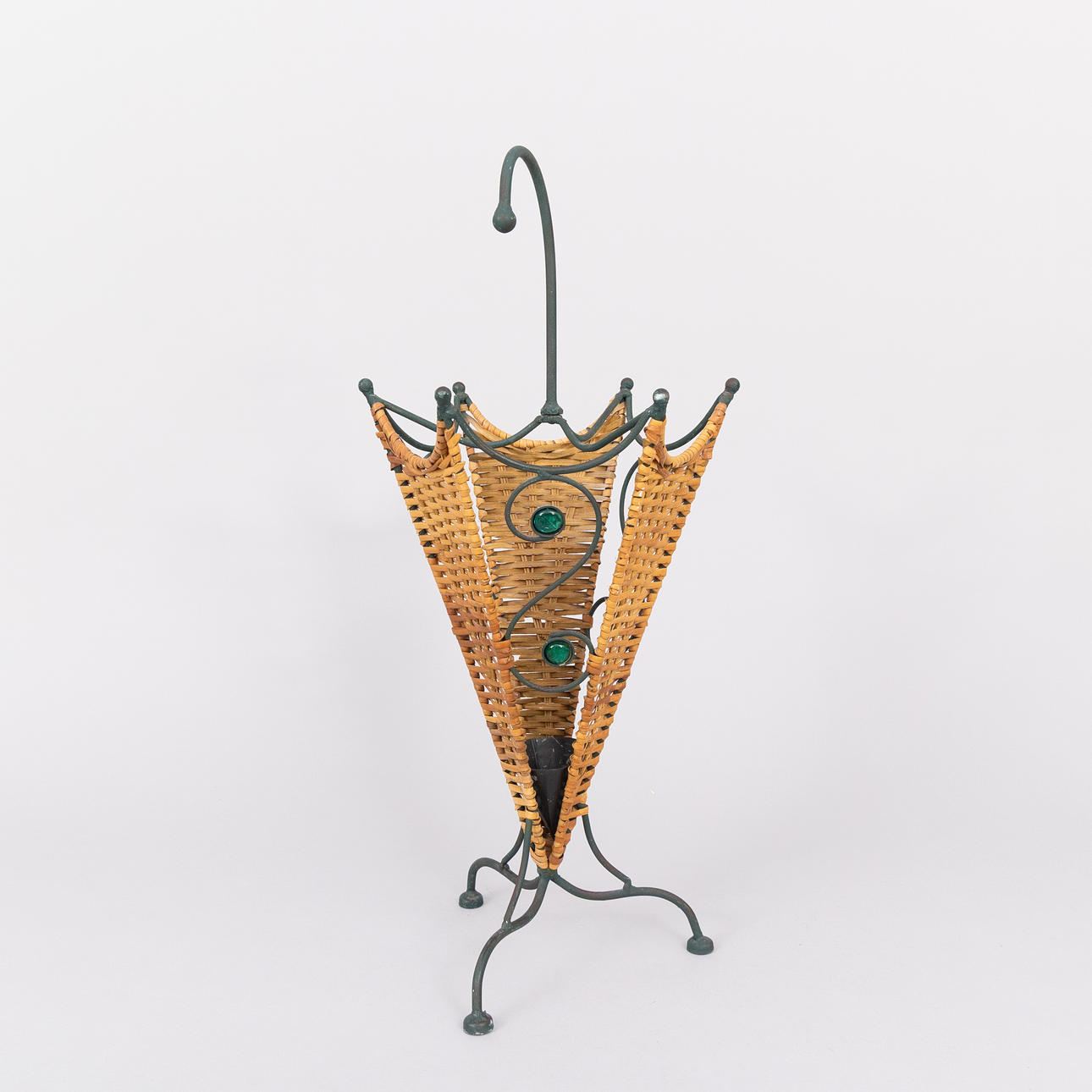 UMBRELLA STAND, metal and glass.