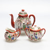 Normal wear and tear, occasional minor chips and glaze marks on the inside of one of the cups, repair on the cream jug.