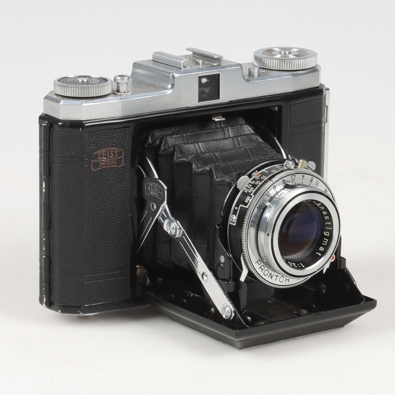 Lens Prontor-SVS, Novar-Anastigmat 1:3,5 f=75mm. In leather case.