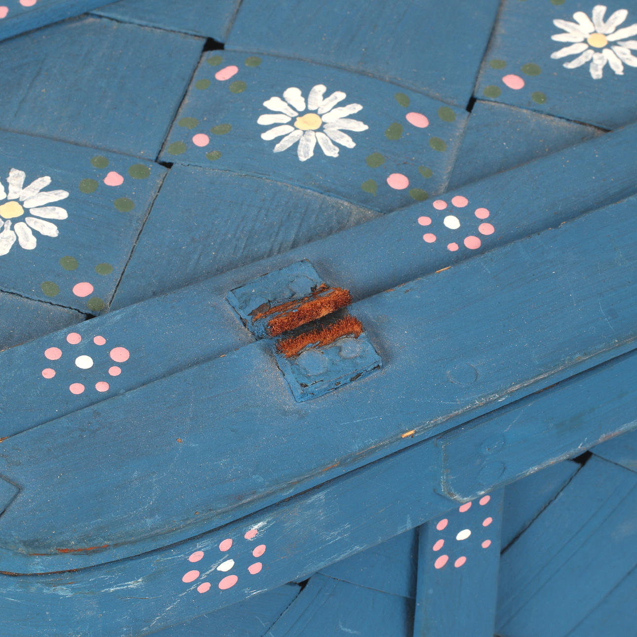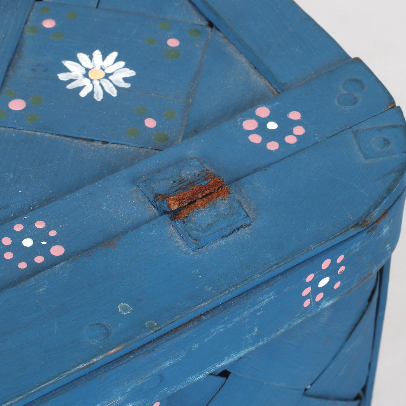 Wear, cover with damaged leather details, later repainting.