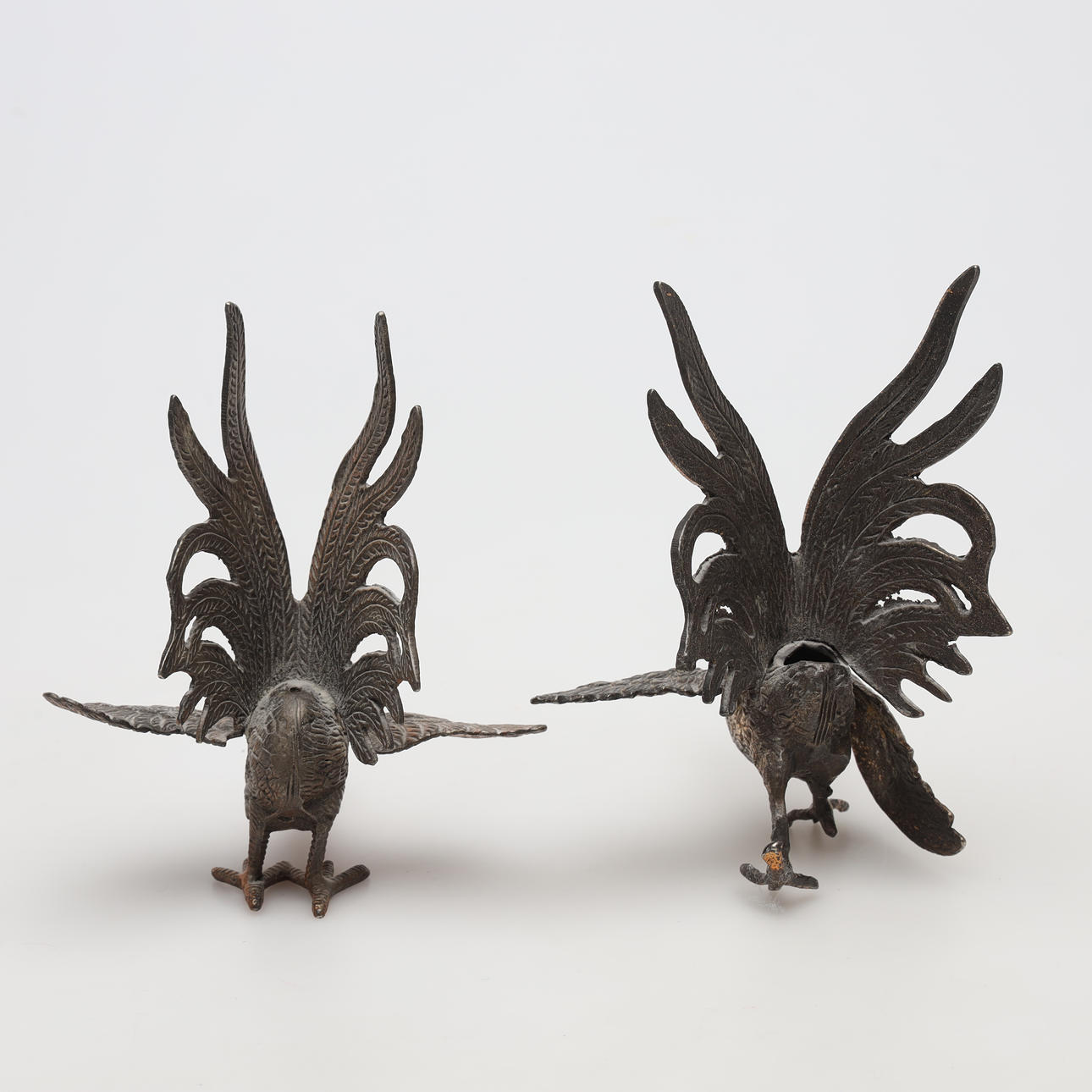 TABLE DECORATIONS, 1 pair, rooster and hen, metal.