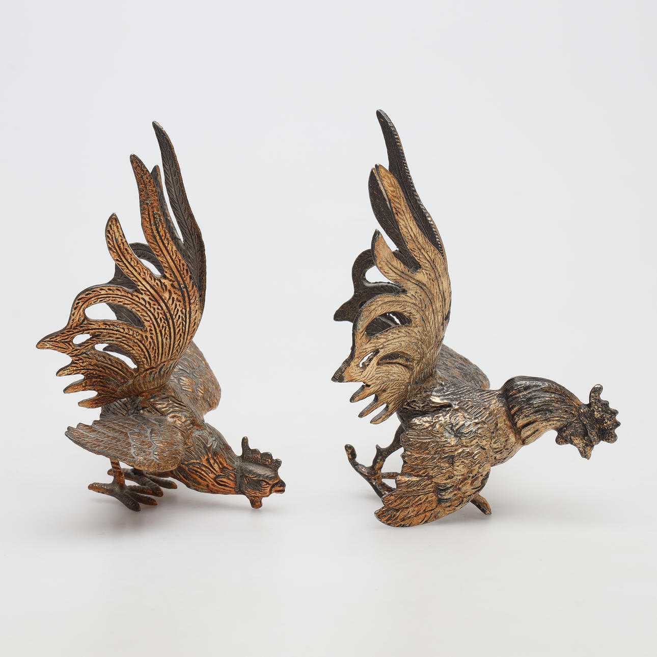 4984404. TABLE DECORATIONS, 1 pair, rooster and hen, metal.