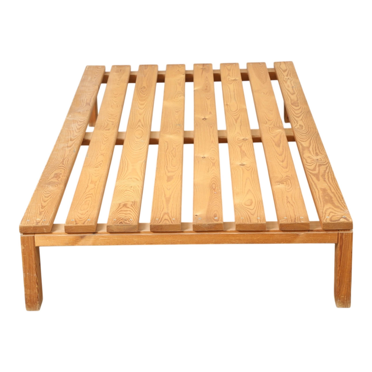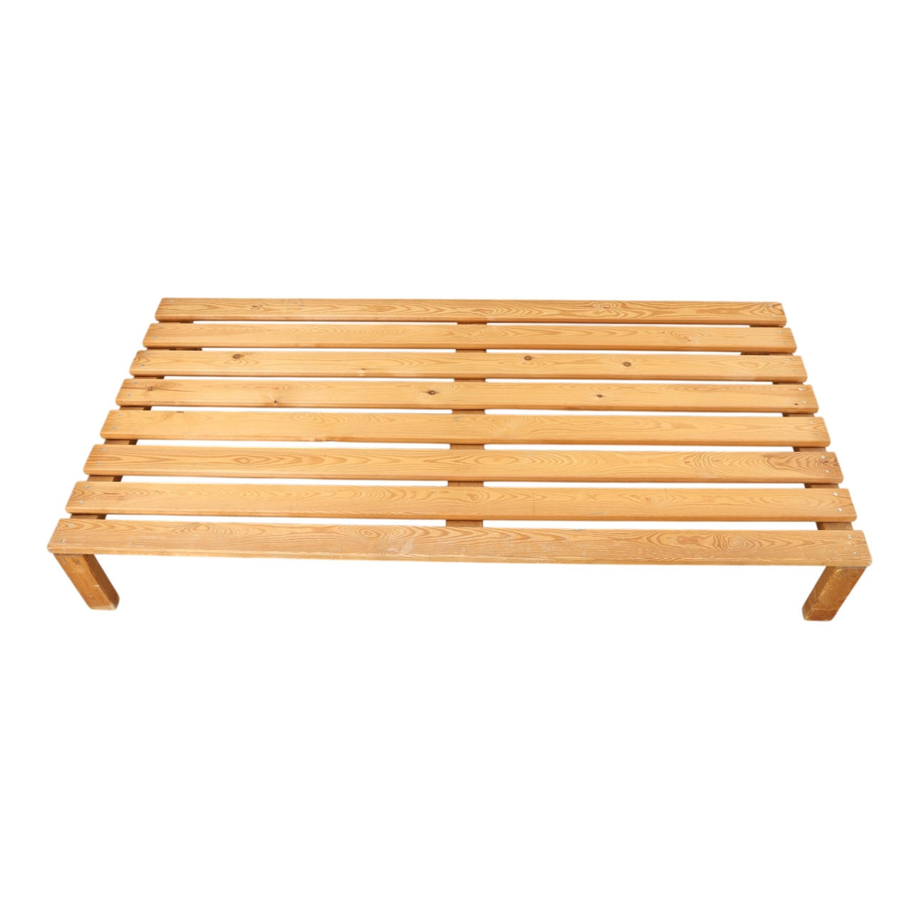 Daybed of solid pine with tap-assembled legs. 1970s. H. 29, L. 200, B. 100 cm. Done at Nyt i bo.