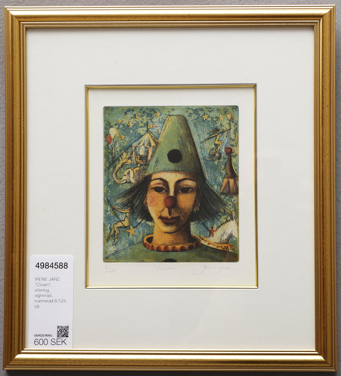 4984588. IRENE JARZ. “Clown”, etching, signed, numbered 6/125.