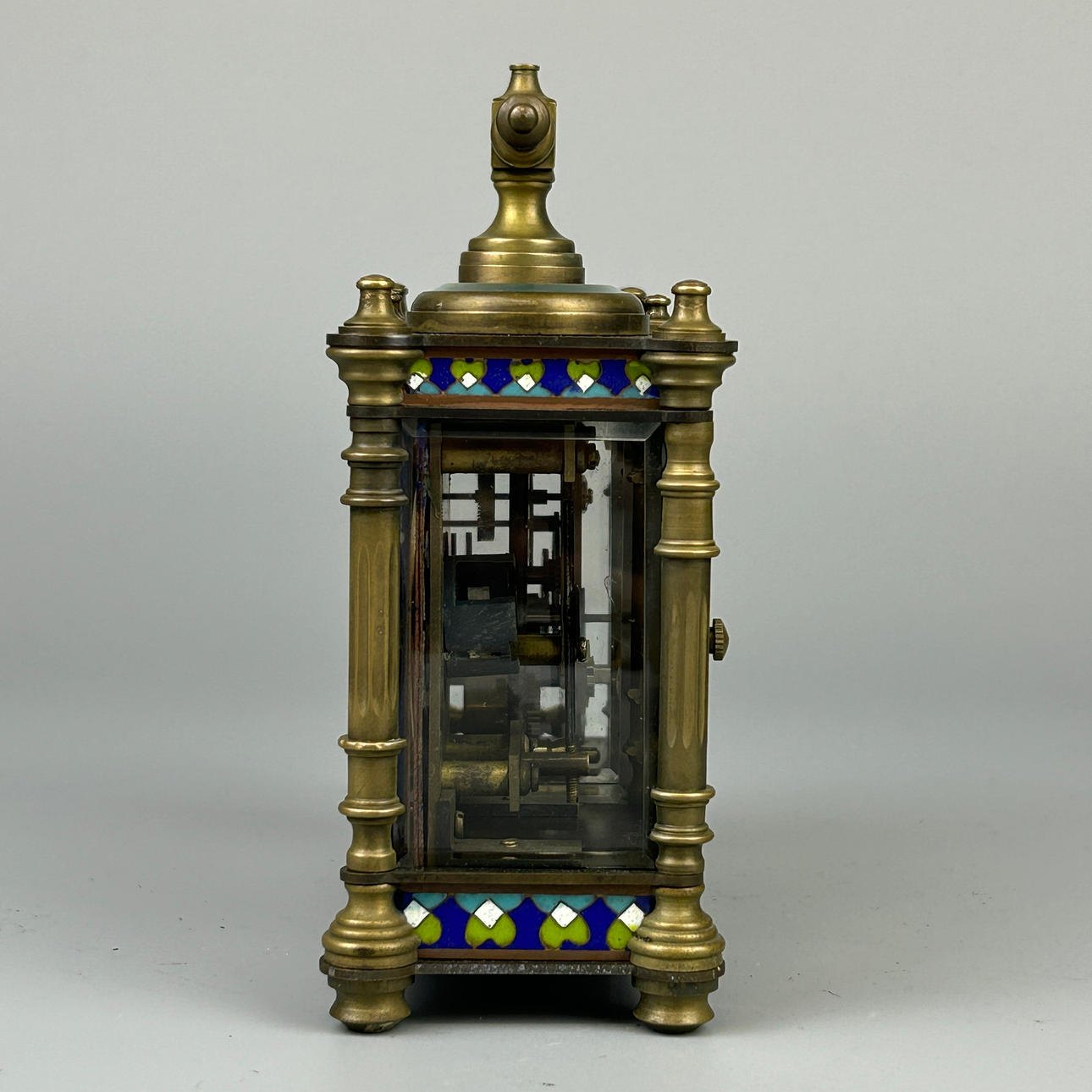 4984704. CLOISONNE & BRASS DOUBLE CARRIAGE CLOCK.