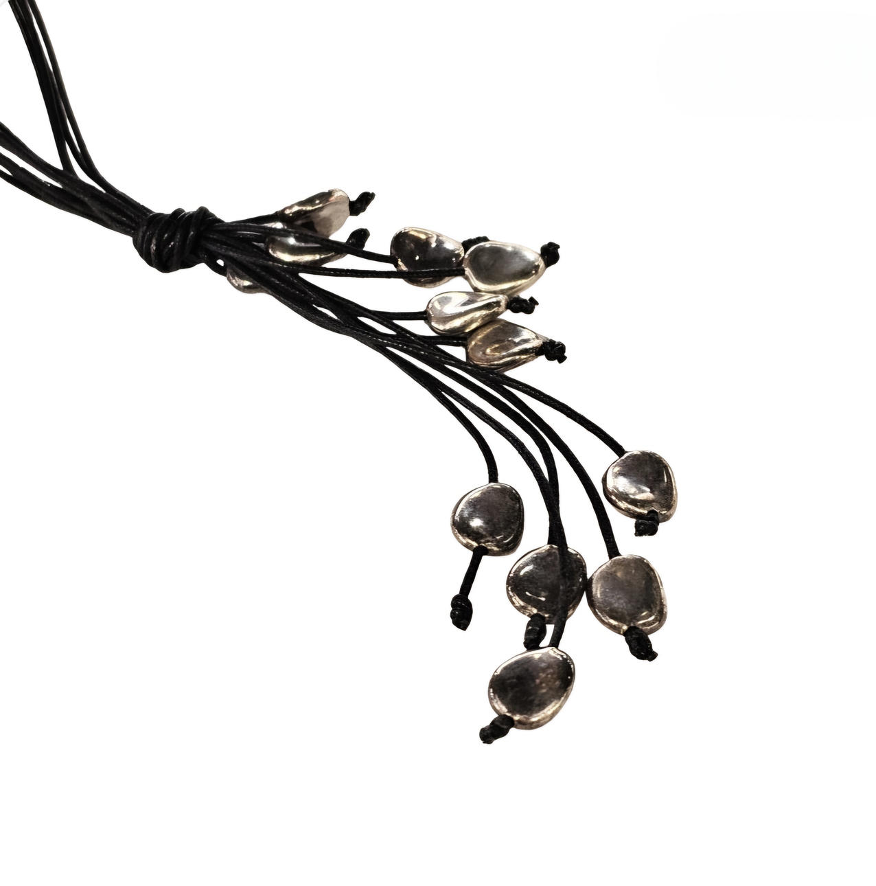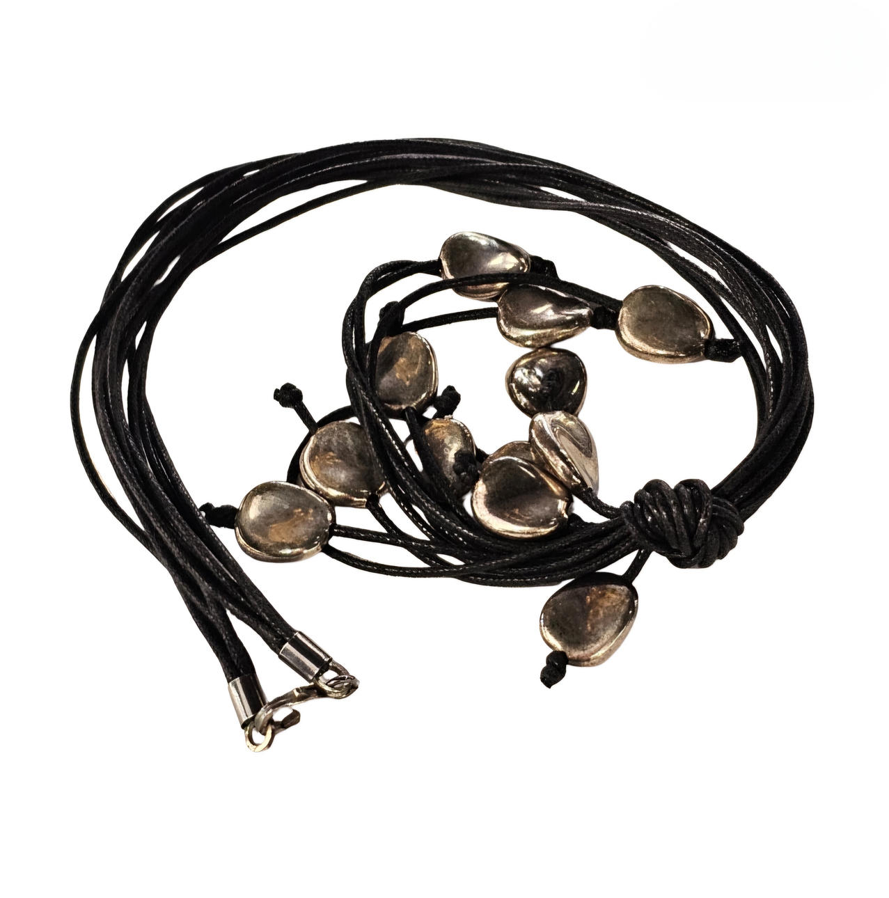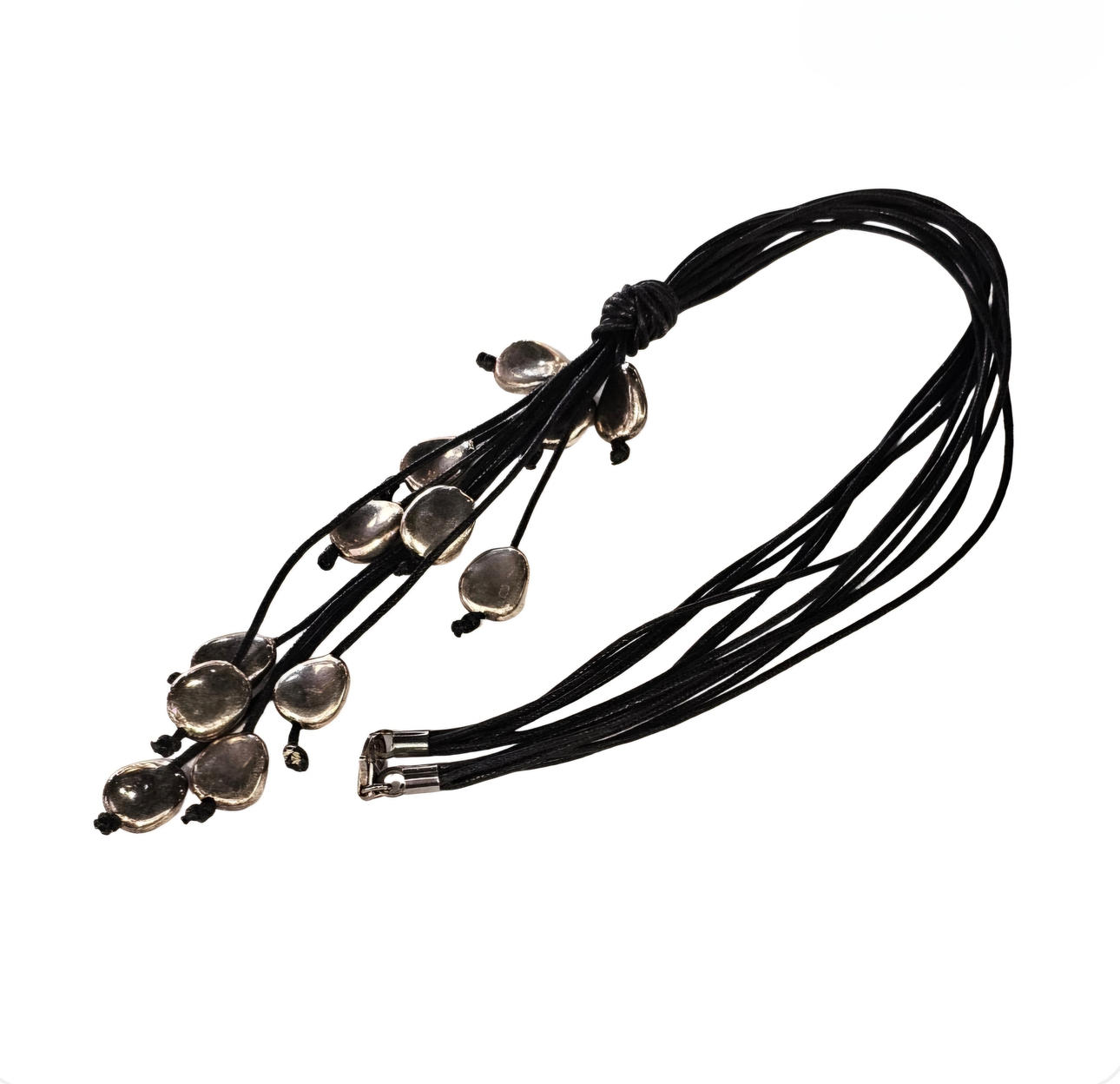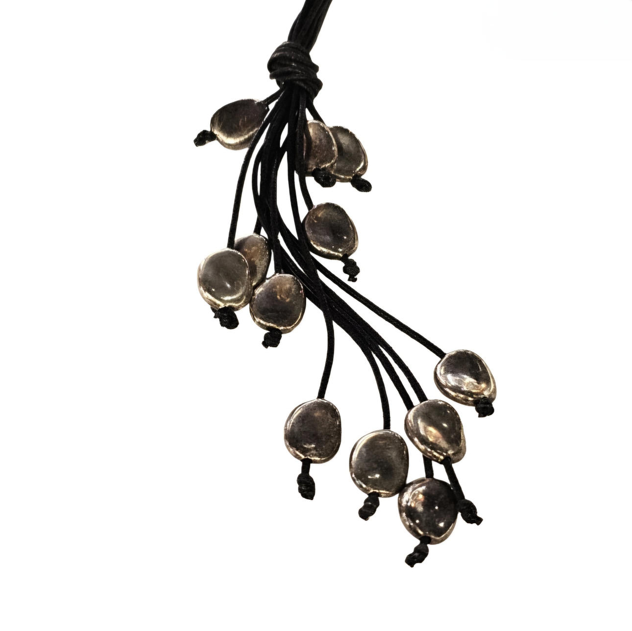 Leather necklace and silver details.