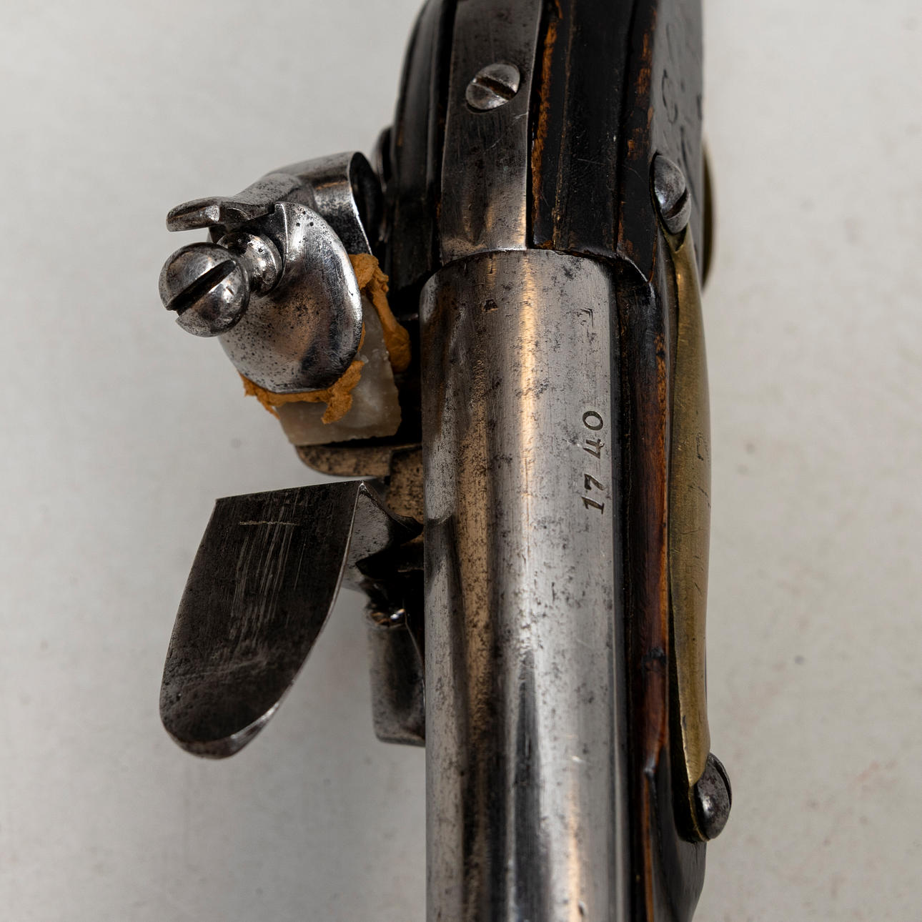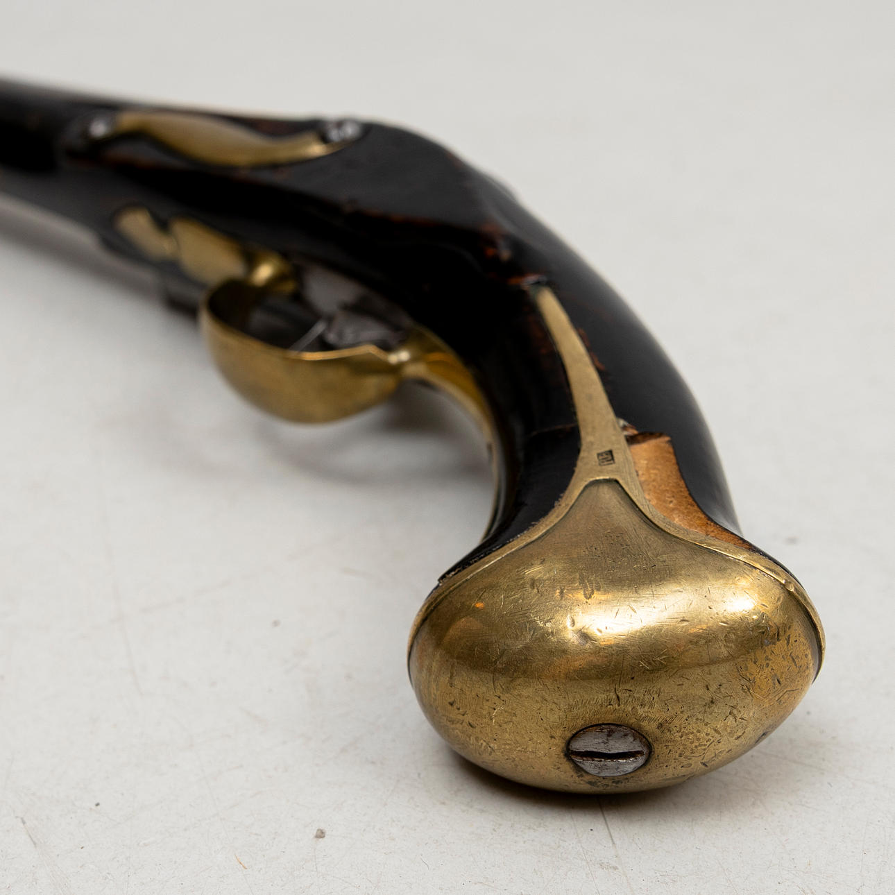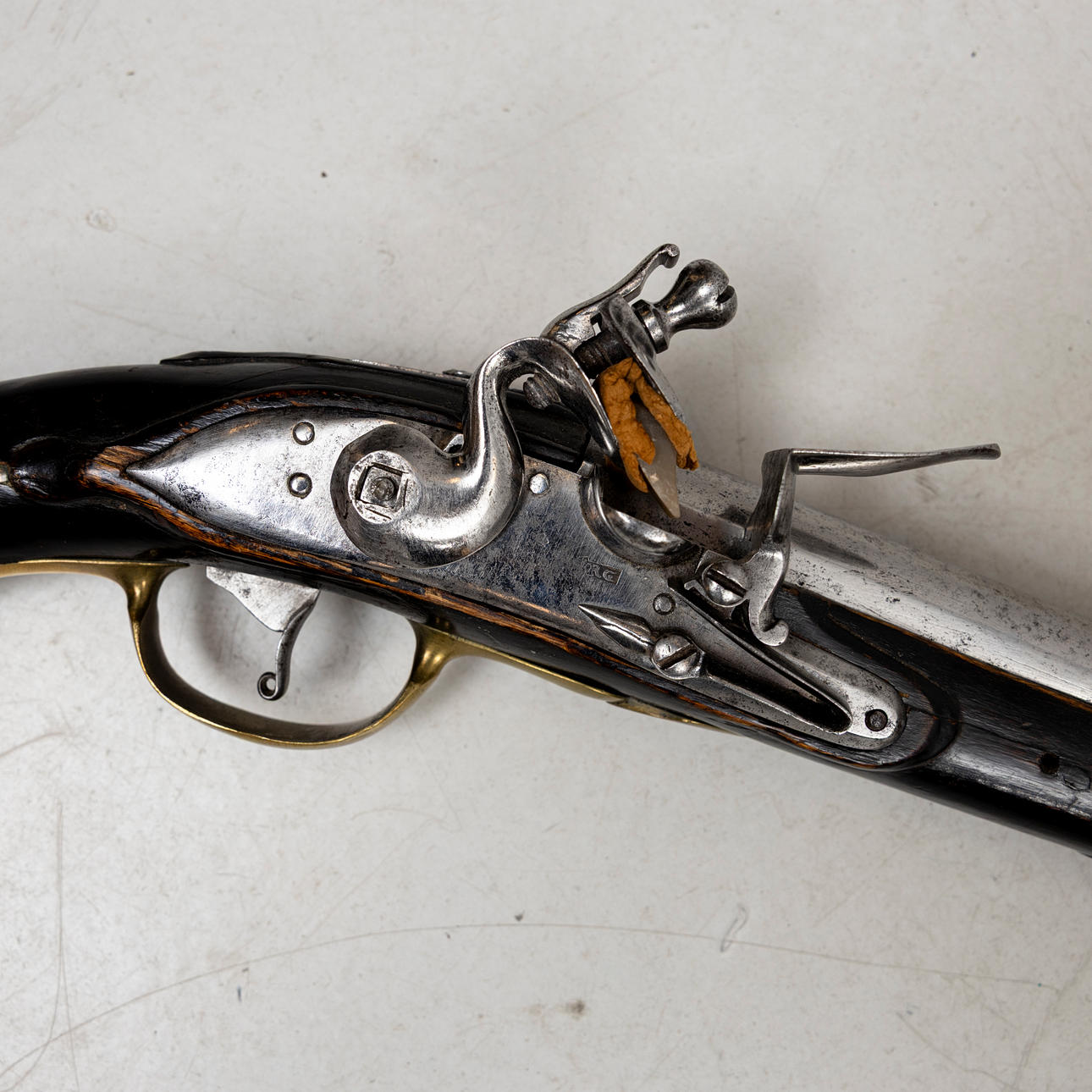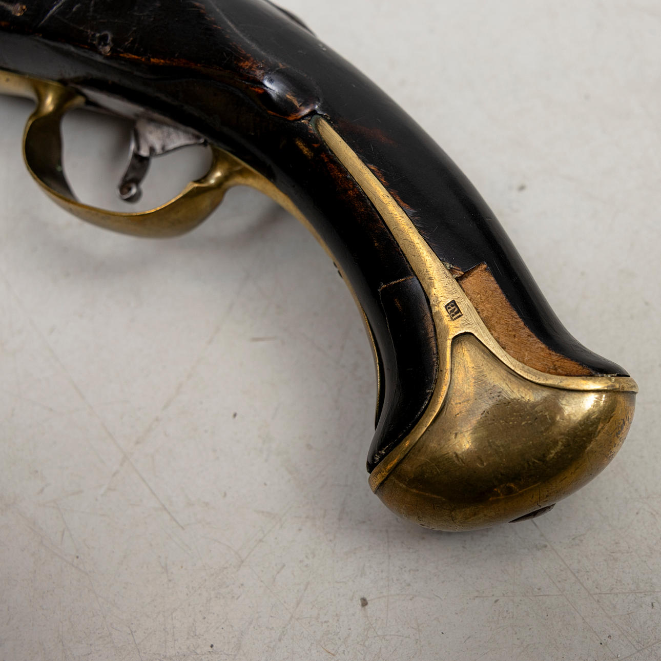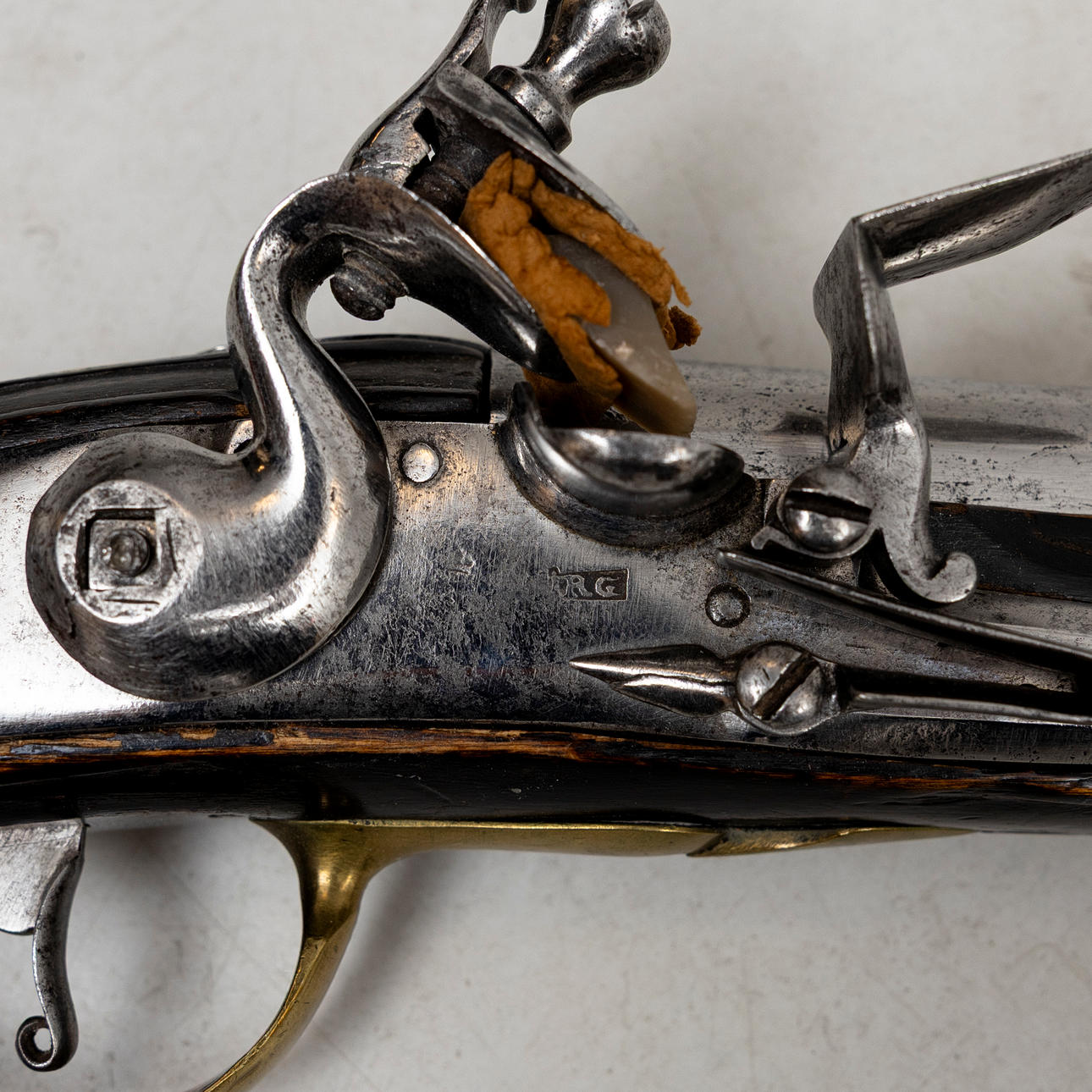 Brass fittings, partly stamped “RB”, possibly by the fittings maker Jöns Rundberg (b.1708) who at the age of 24 became a master at the Jönköping factory. (see “Svenska Böss- och pistolsmeder”, Kåa Wennberg, 1989, p. 201.)