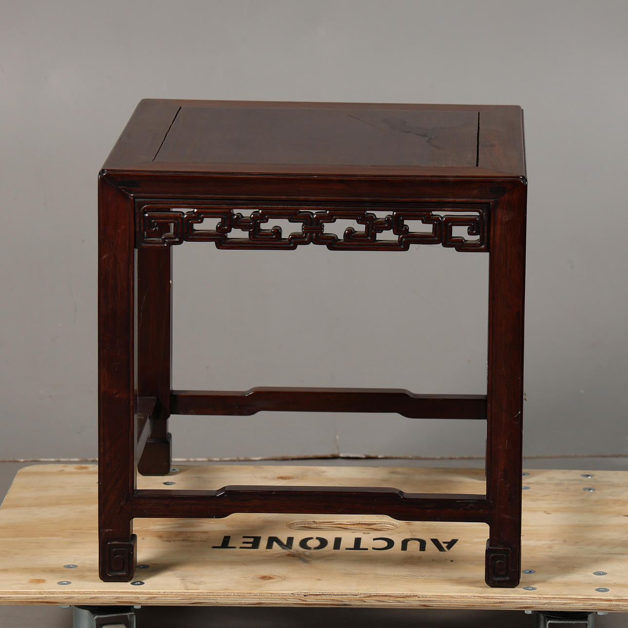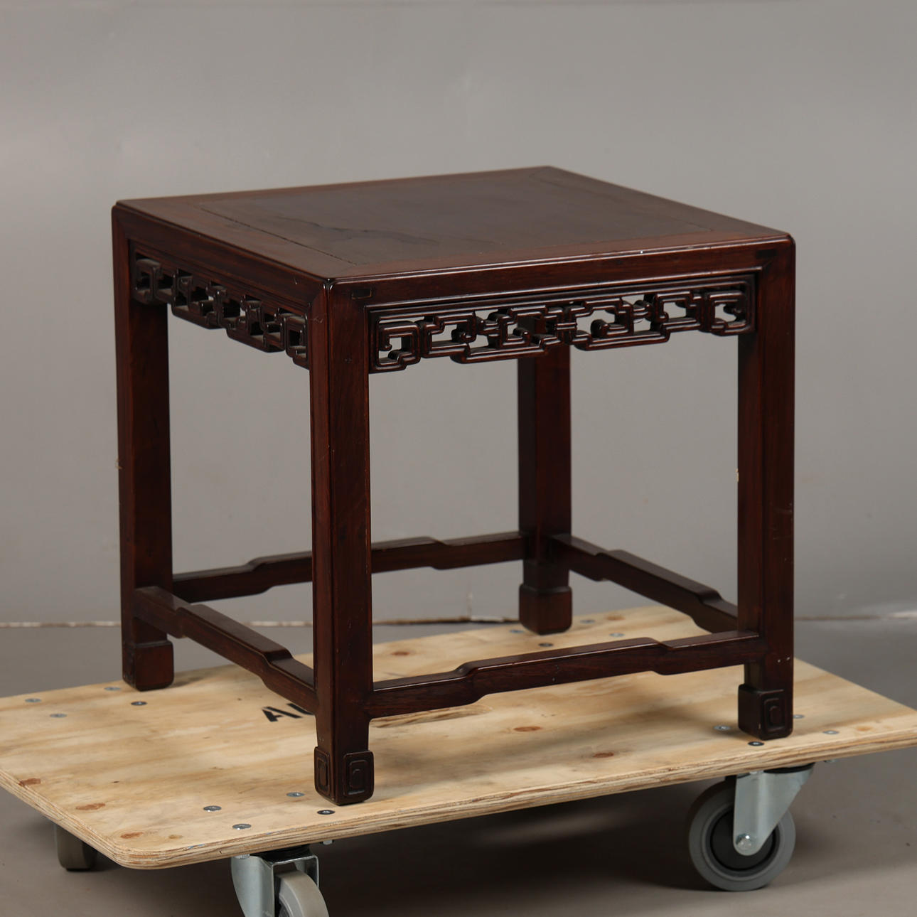 Square top above a Greek key style carved frieze, 45.5cm square, 45.5 cm tall.