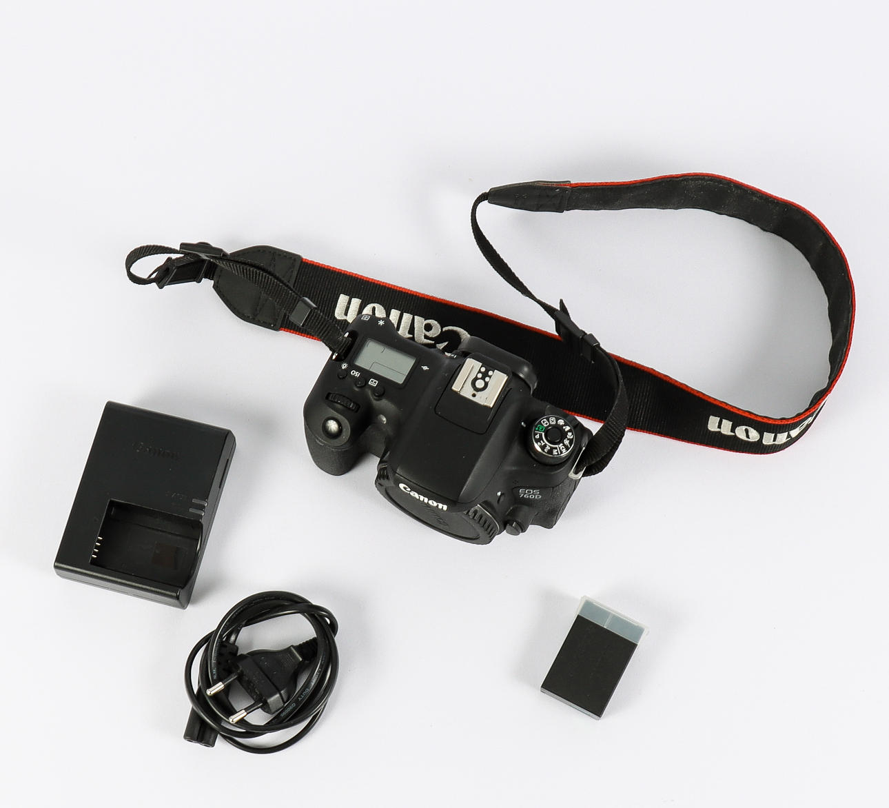 Charger, 2 batteries and shoulder strap included.