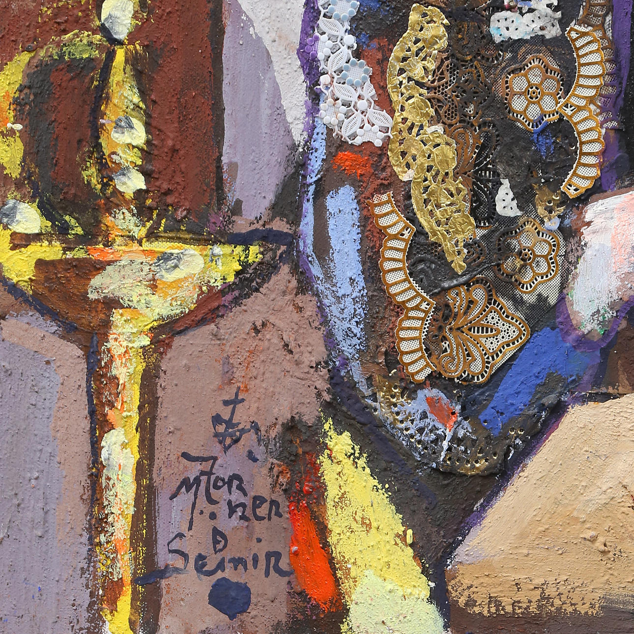 Mixed media on canvas.