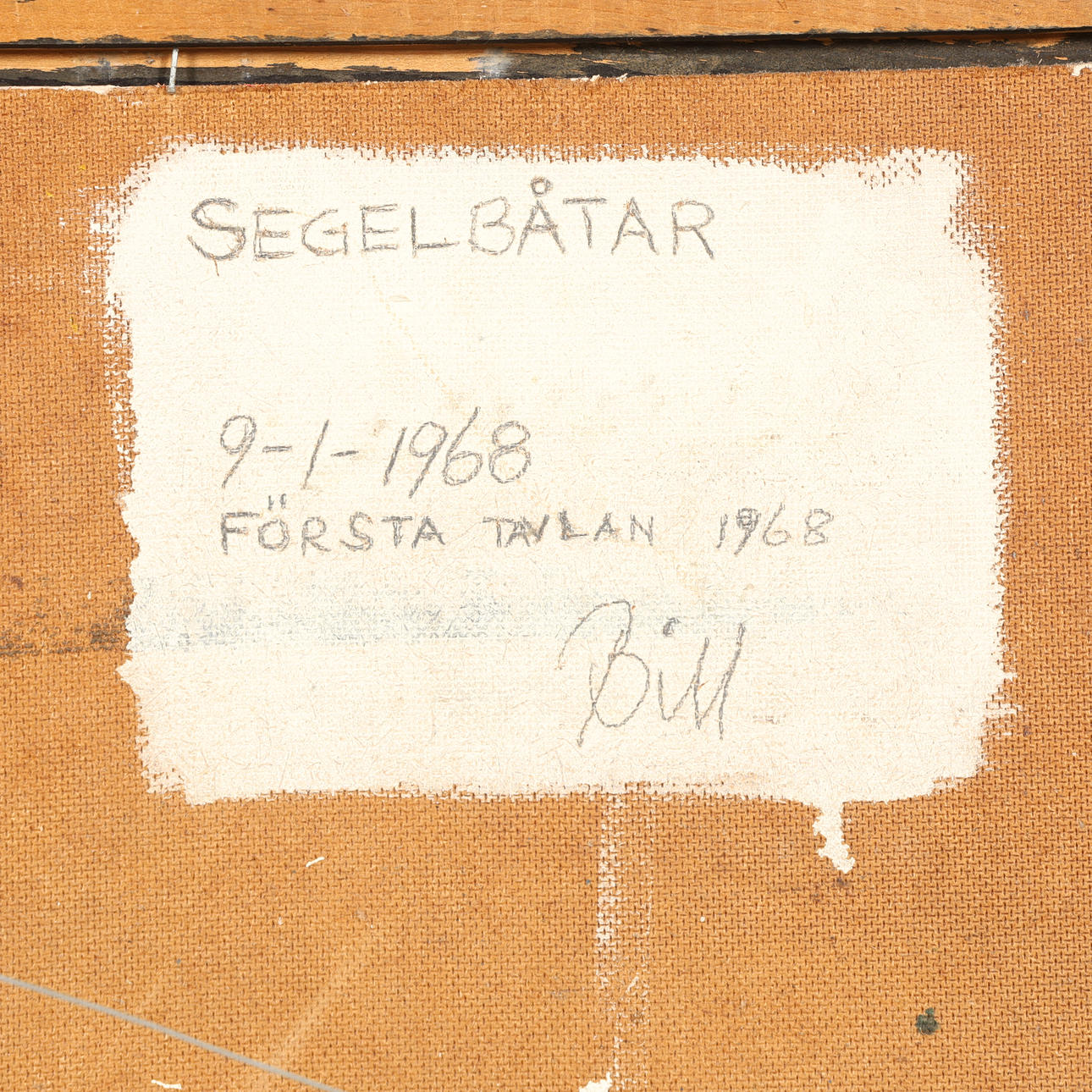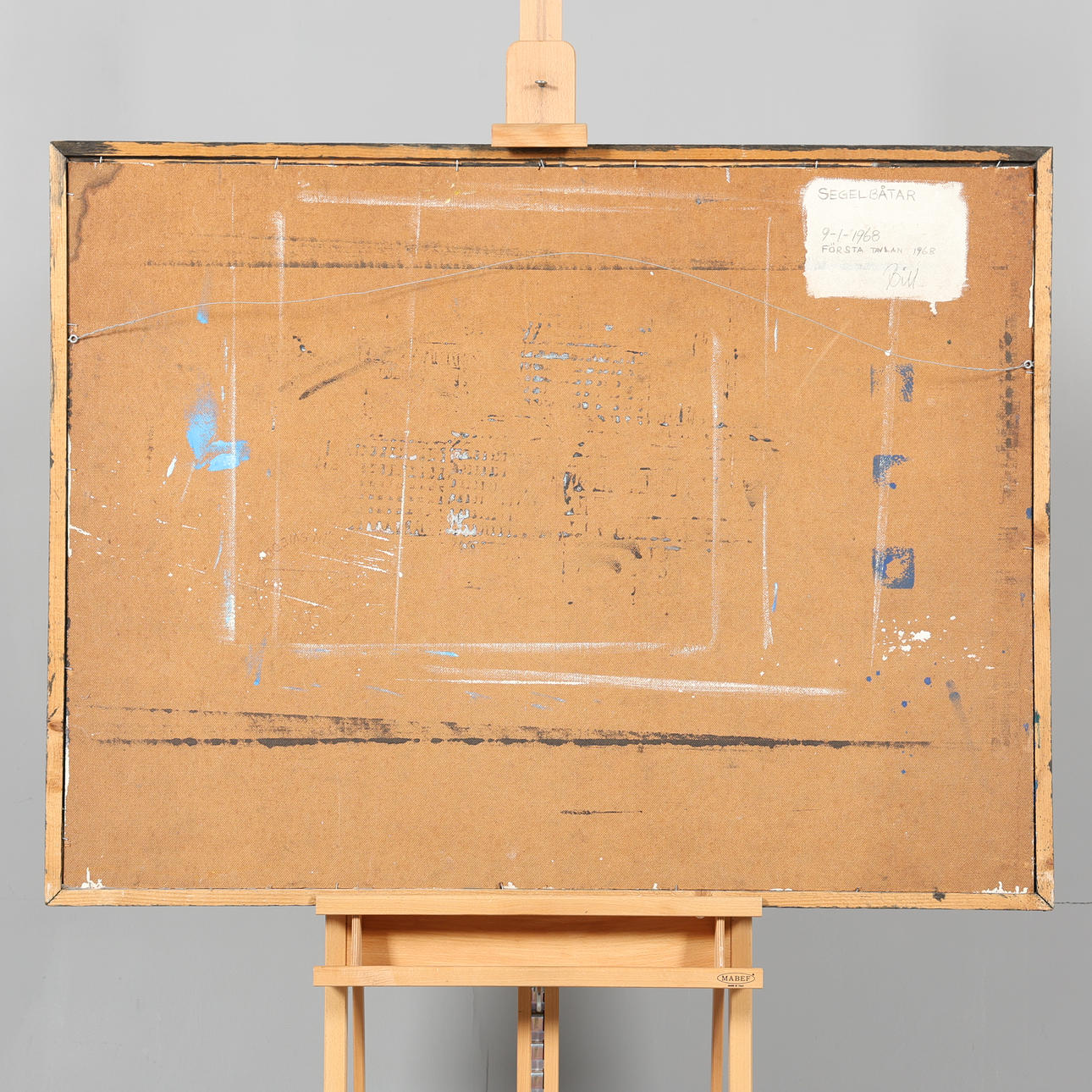 4985863. BILL FLODIN. OIL ON PANEL, “Sailboats”, signed and dated 1968.