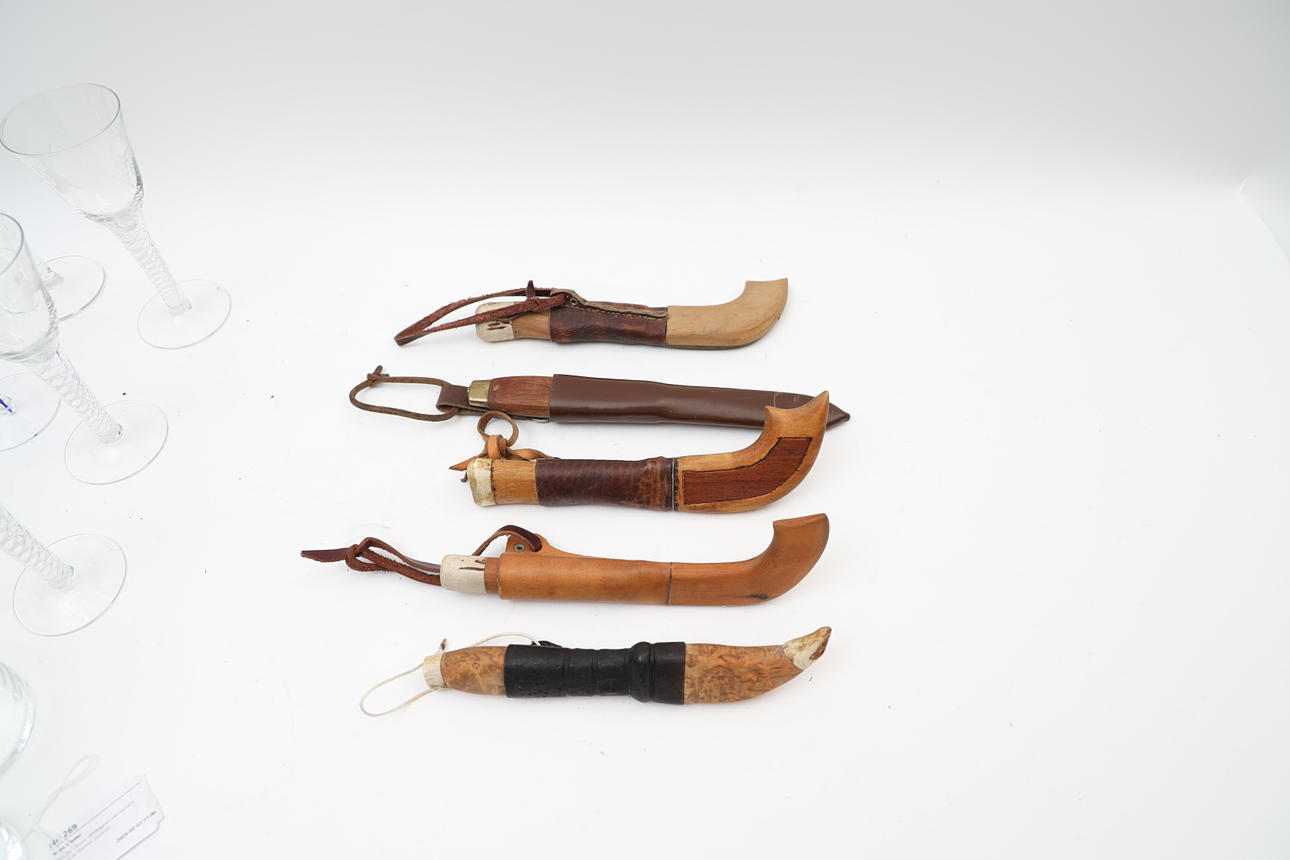 Horn, wood, brass, steel. Longest total length 26,5cm.