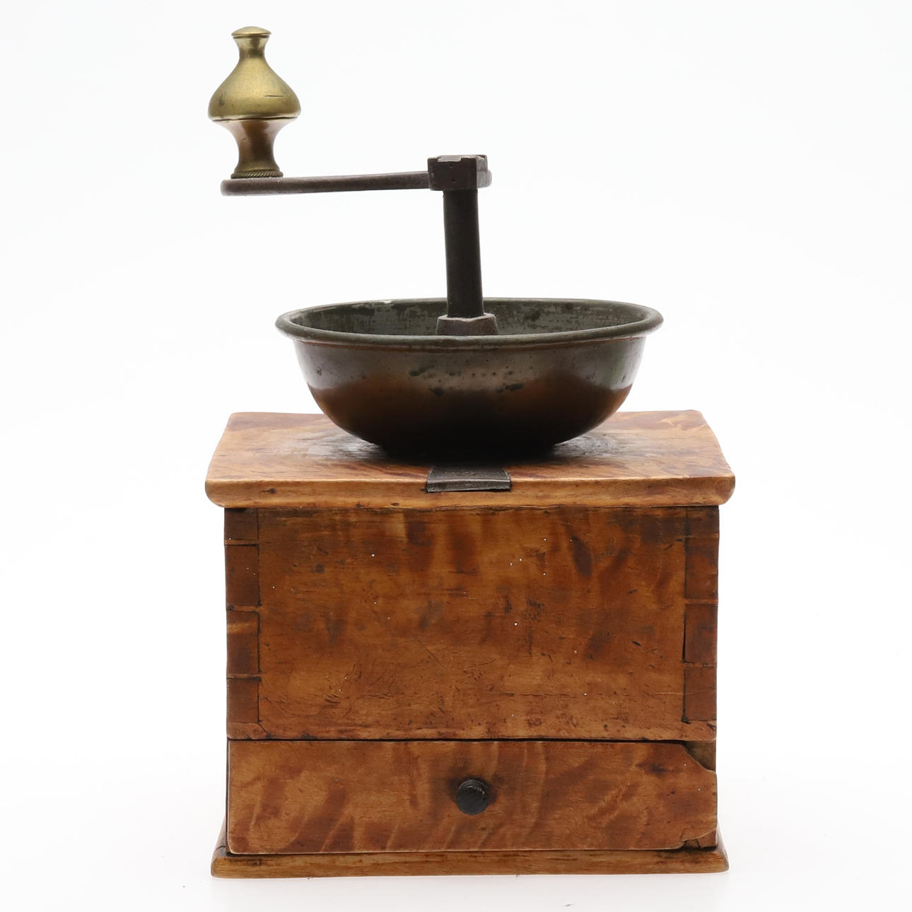 4985913. COFFEE GRINDER. An 18th/20th century flame birch log.