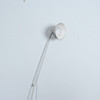 The central feature of the AYNO lighting family is a fibreglass rod, which is stretched to an arc through the lamp cable. The internal tension of the rod enables a lamp without joints. By moving the two adjustment rings at the top and bottom, the fibreglass rod is bent into the desired position and the light is directed to where it is needed. The cable stretches the rod into an arc, the radius of which can be varied as required using the adjustment rings. The fine adjustment is carried out using the swivel lampshade.