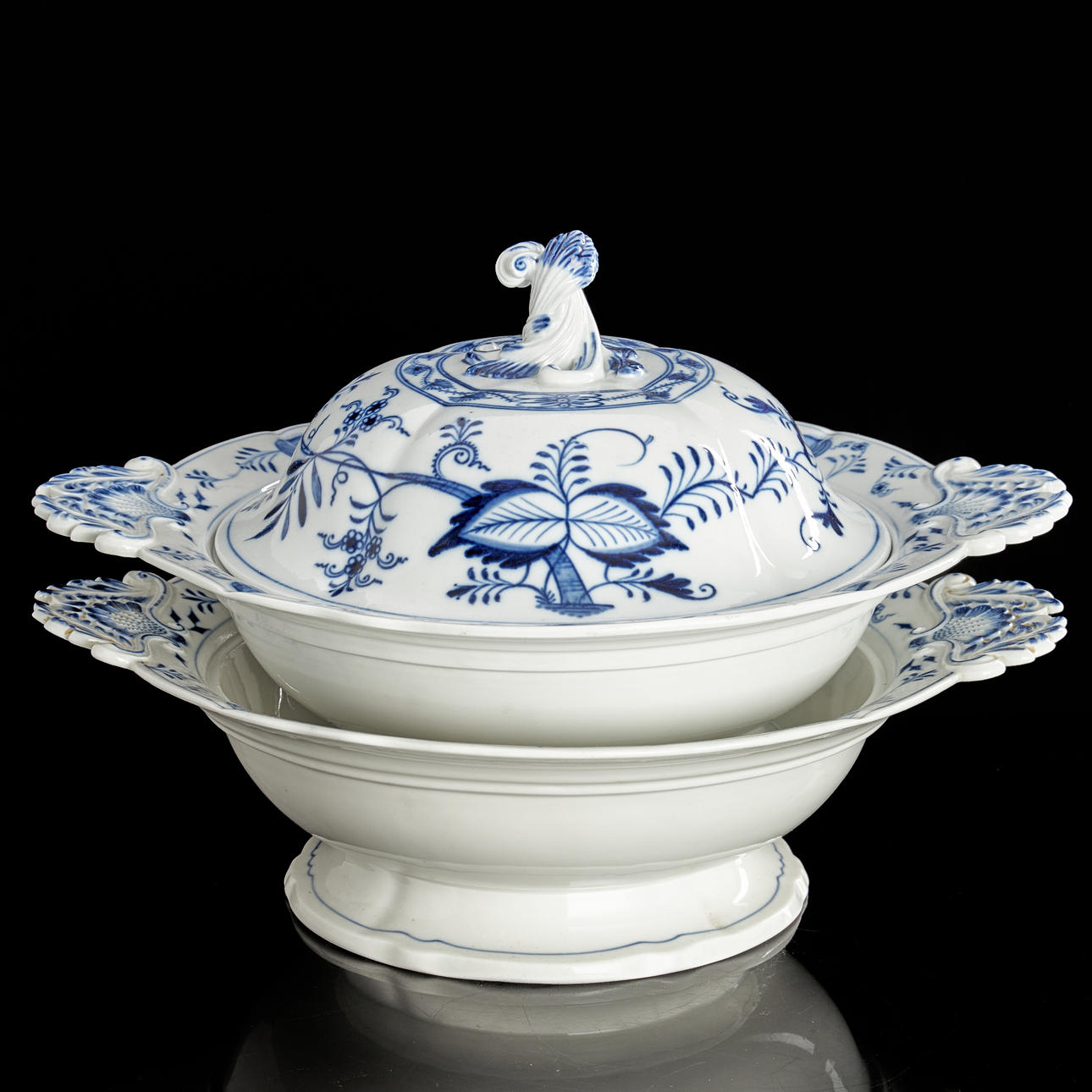 Consisting of 2 serving bowls, one of which with a lid, length approx. 33 cm. Both with Meissen's mark at the bottom.