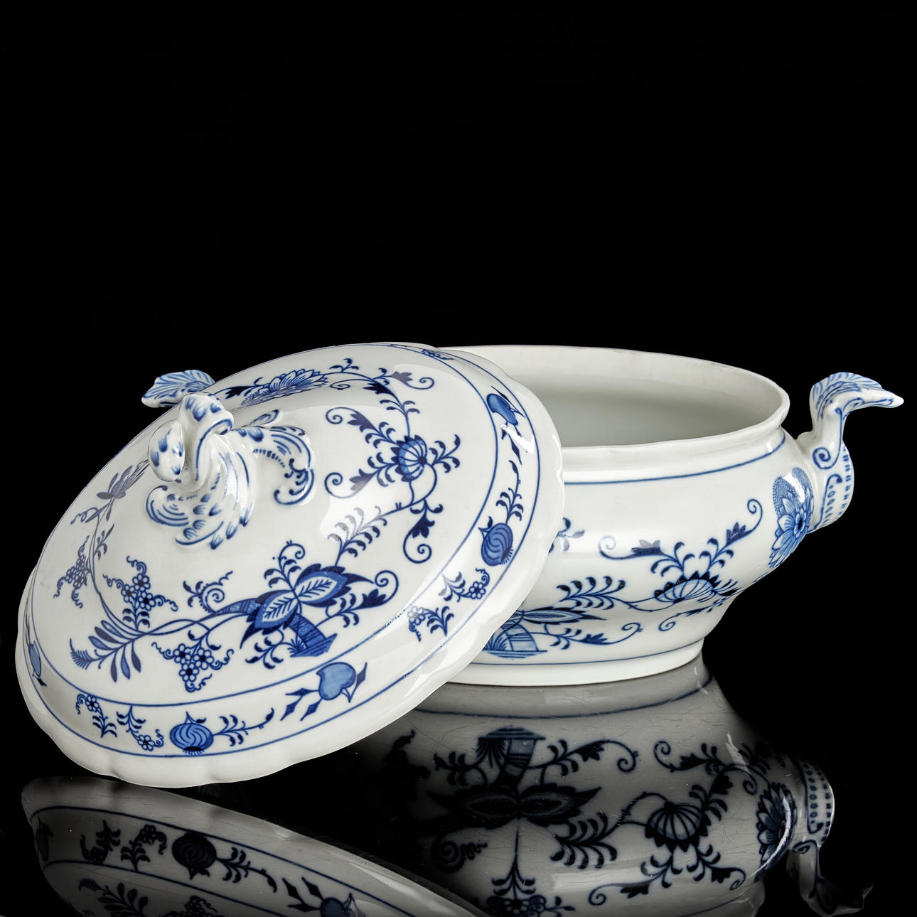 1 oval terrine with lid, stamp signed “Meissen, Made in Czechoslovakia”