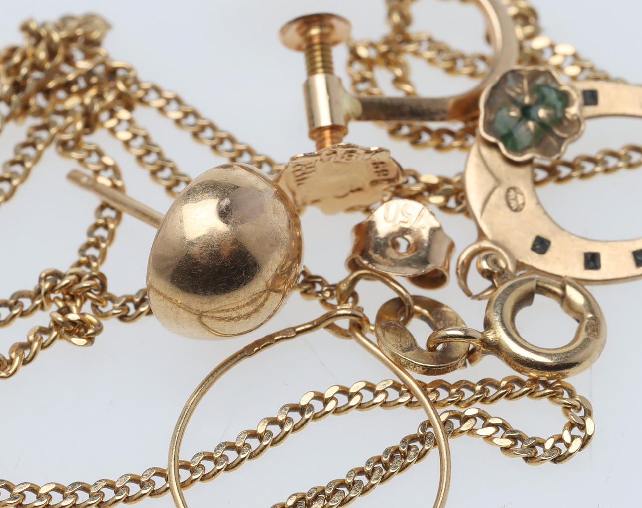 Various jewellery, some stamped, others positively acid tested for 18k gold.