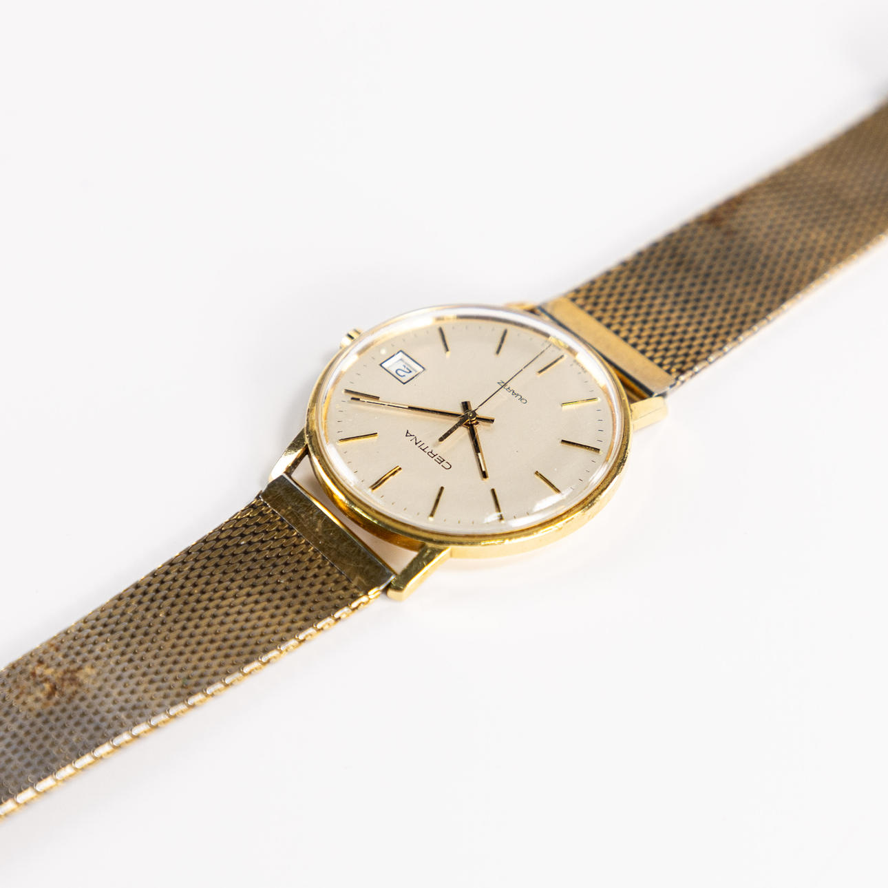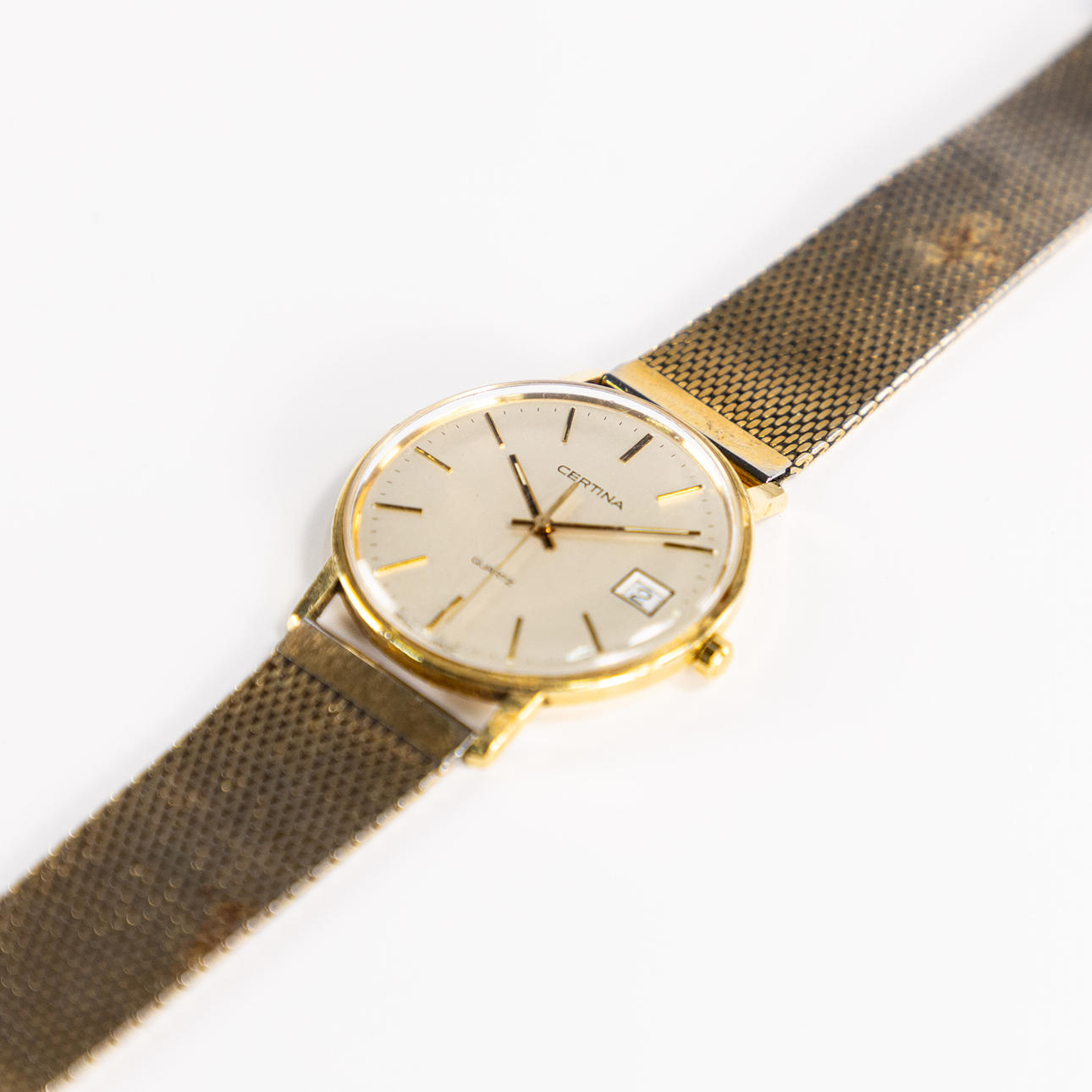 Certina Quartz, 18k gold, diameter approx. 33.5 mm excl. crown, reference number EOL 115 9199 68, comes on a gold-plated metal bracelet.