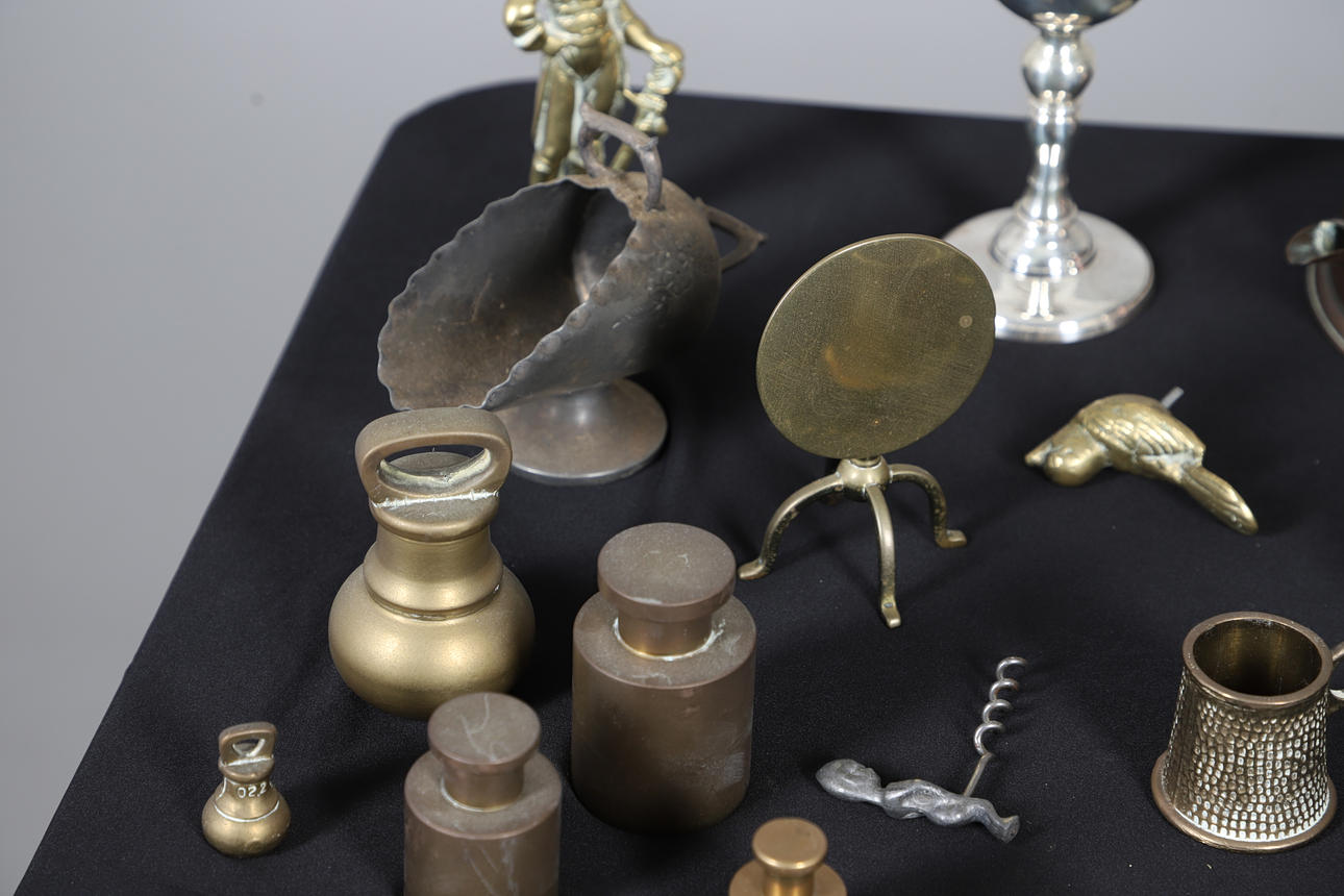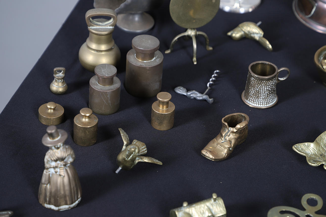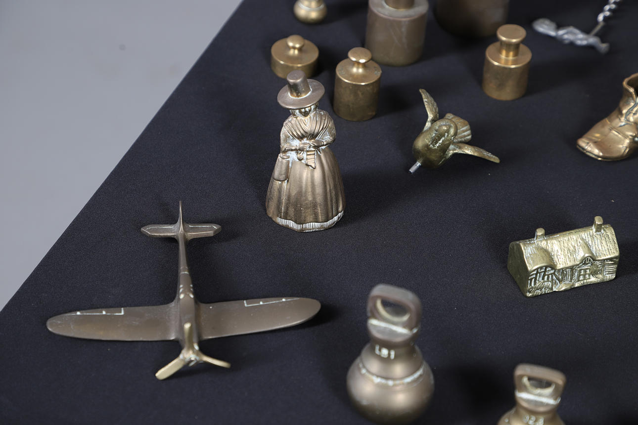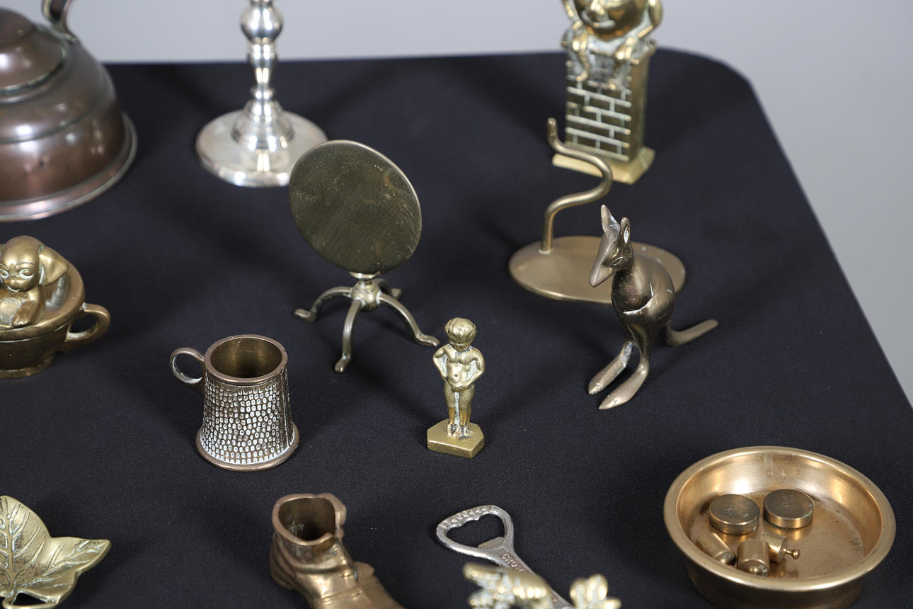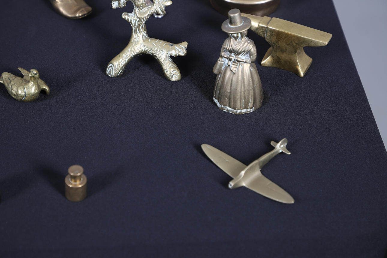 Including a Humpty Dumpty money box, an anvil, bells, a kangaroo, coal scuttle, spitfire, tilt-top table and others. Largest H15cm (qty).